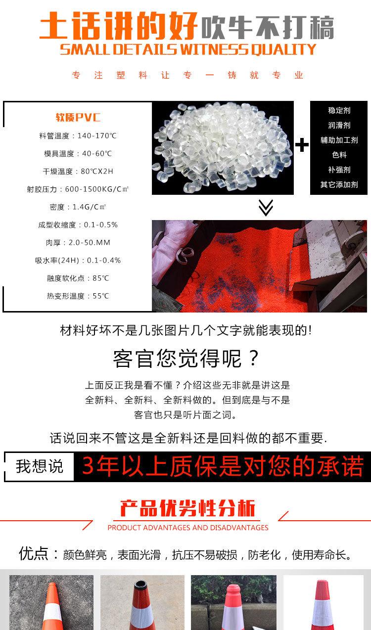 Nombre del producto: Cono de PVC de 70 cm Altura: 70 cm Base: 36x36 cm Peso: 2 kg Precio: 23 yuanes