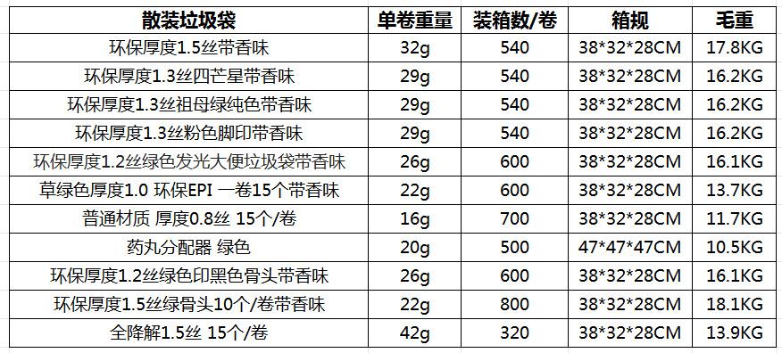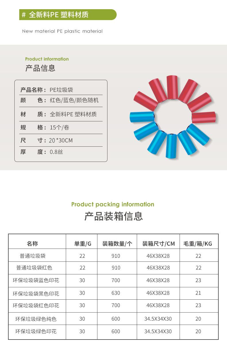 Especificaciones de la bolsa de basura en caja:Haga clic para saltar directamente)8 rollos/18 rollos/9 rollos/36 rollos. También hay paquetes combinados con dispensador.