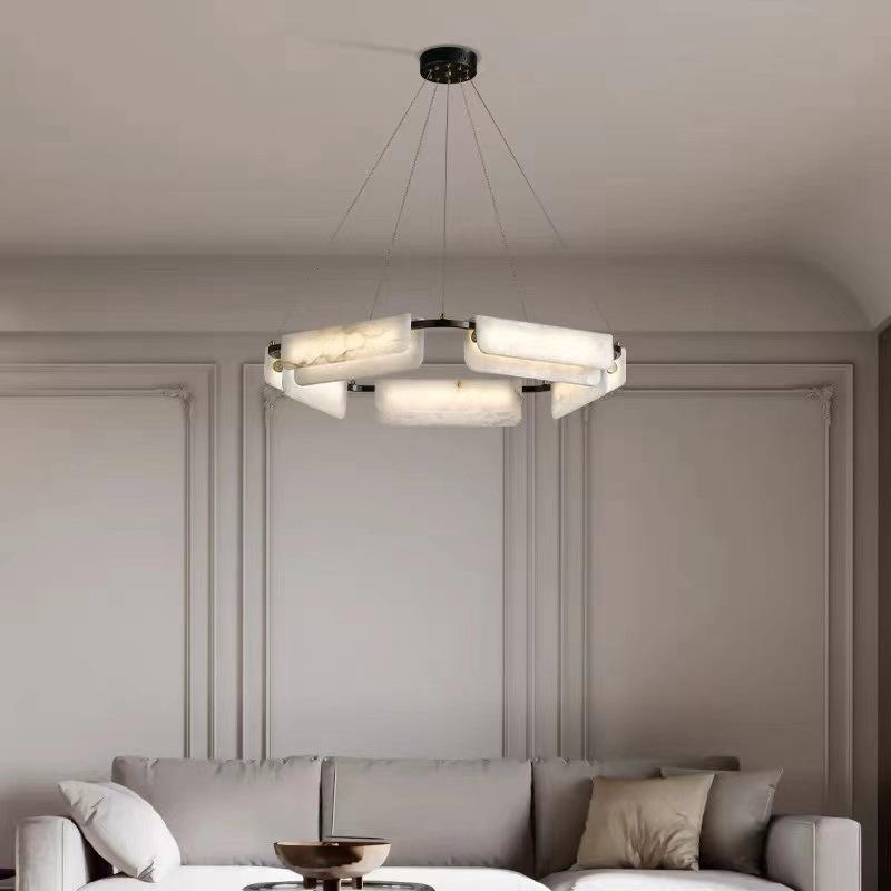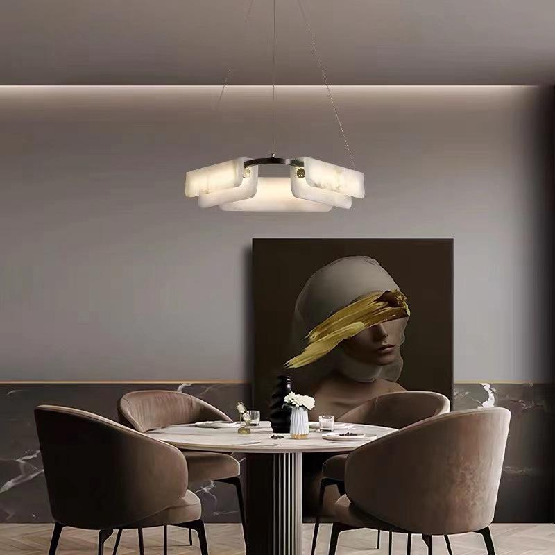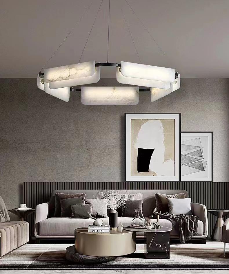 Lámpara de araña de mármol español para sala de estar, completamente de cobre, moderna, de diseño simple, creativa, para comedor, dormitorio, bar, lámparas de lujo