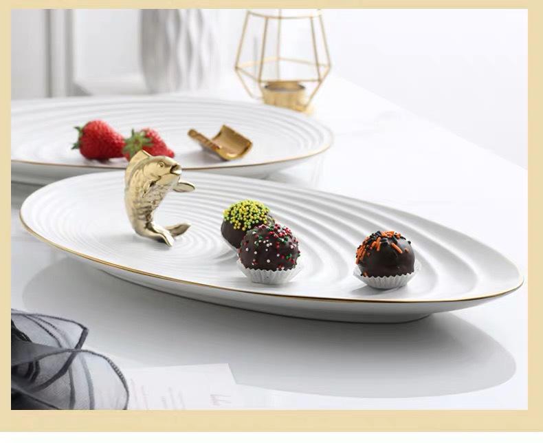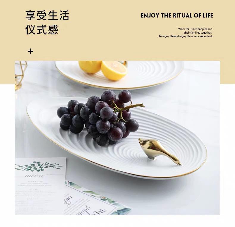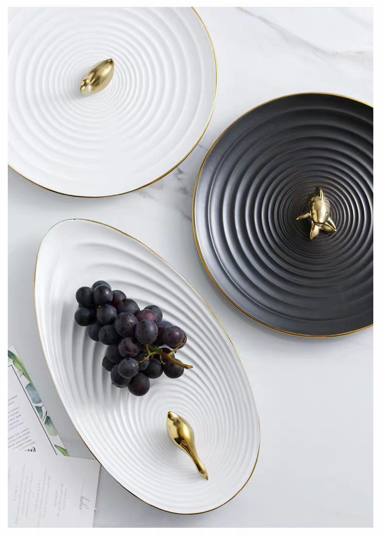 Plato de fruta de cerámica moderno y ligero de lujo, adornos creativos de animales, plato de fruta para boda, mesa de centro, sala de estar, decoraciones de almacenamiento al por mayor