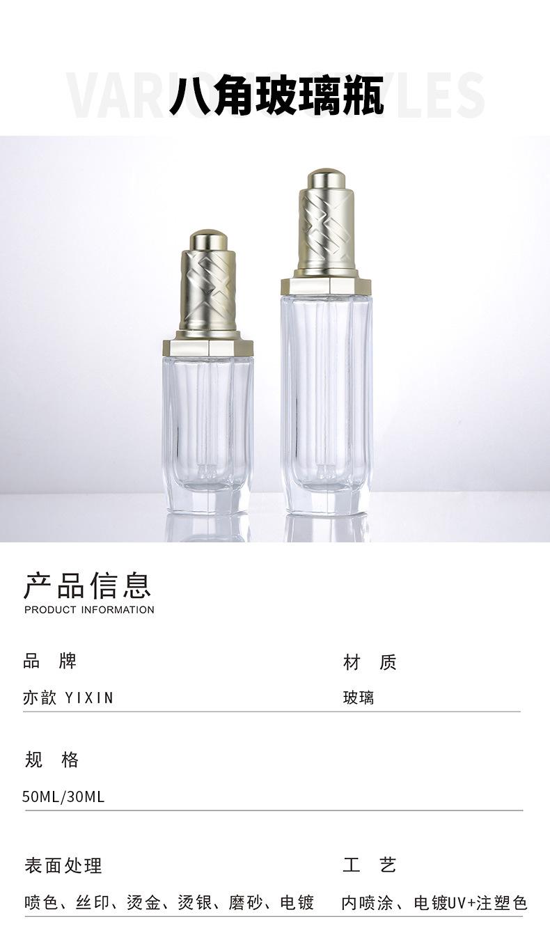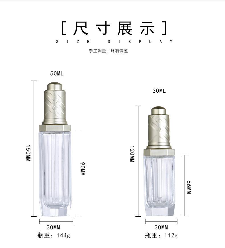 Compra En stock, botella cuentagotas de 50 ml y 30 ml, botella de aceite esencial líquido, subenvase de vidrio octagonal de fondo grueso, botella vacía, material de envasado cosmético al por mayor en Joom.pro