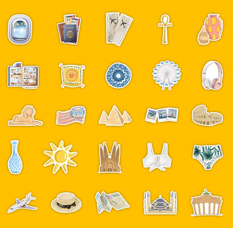 50 pegatinas de grafiti para viajes de vacaciones, pegatinas decorativas para coche, teléfono móvil, ordenador, pegatinas creativas impermeables de dibujos animados para niños