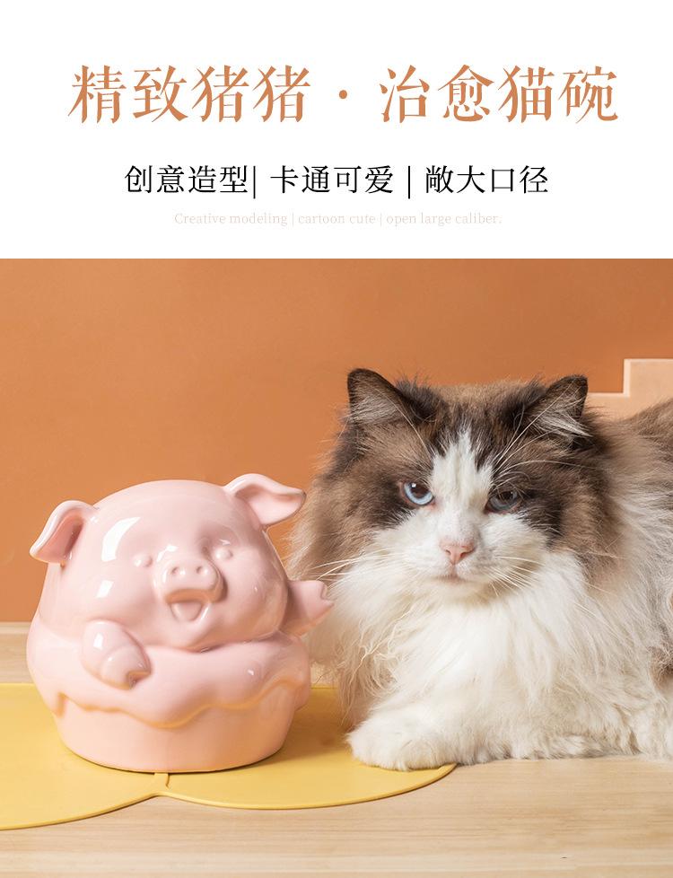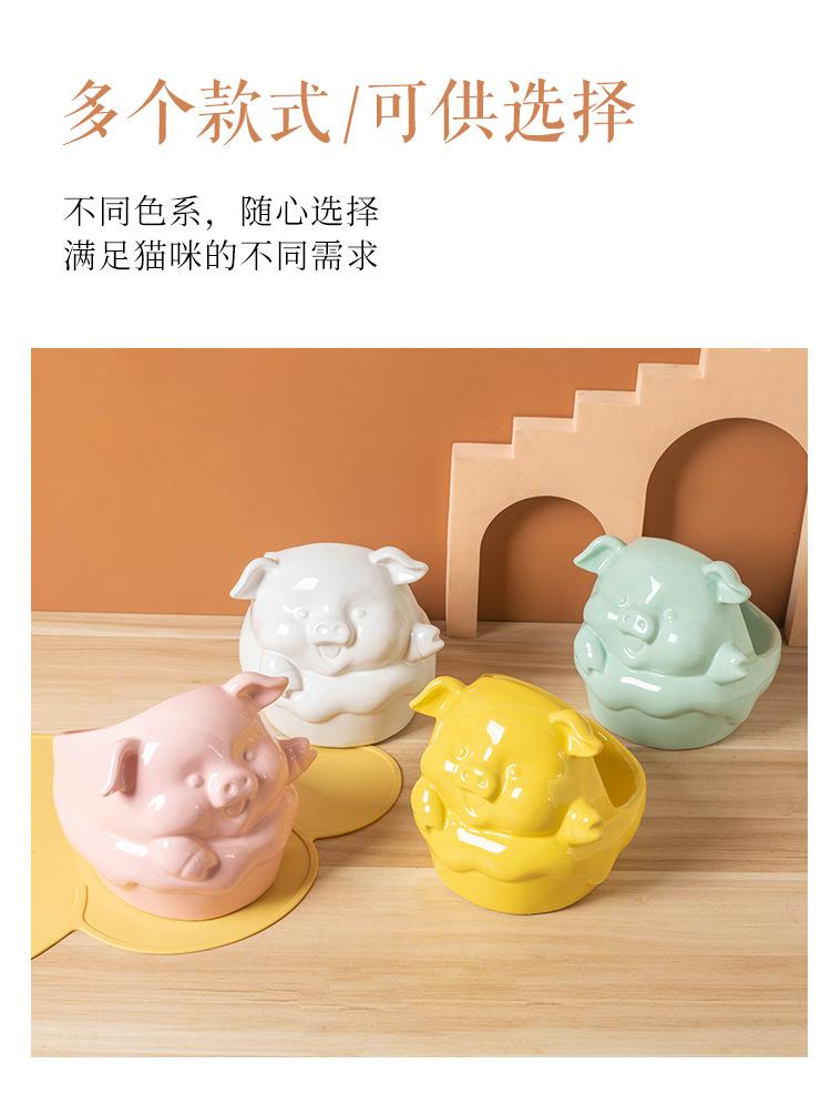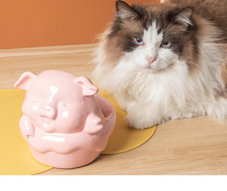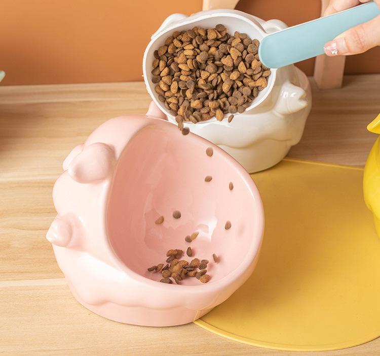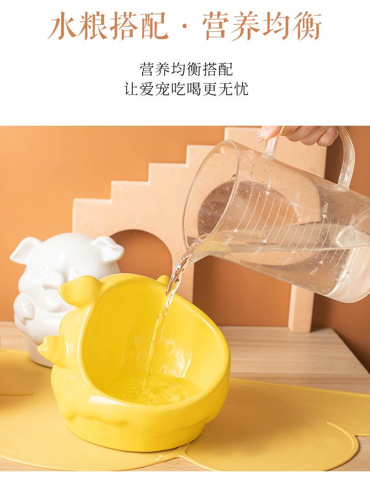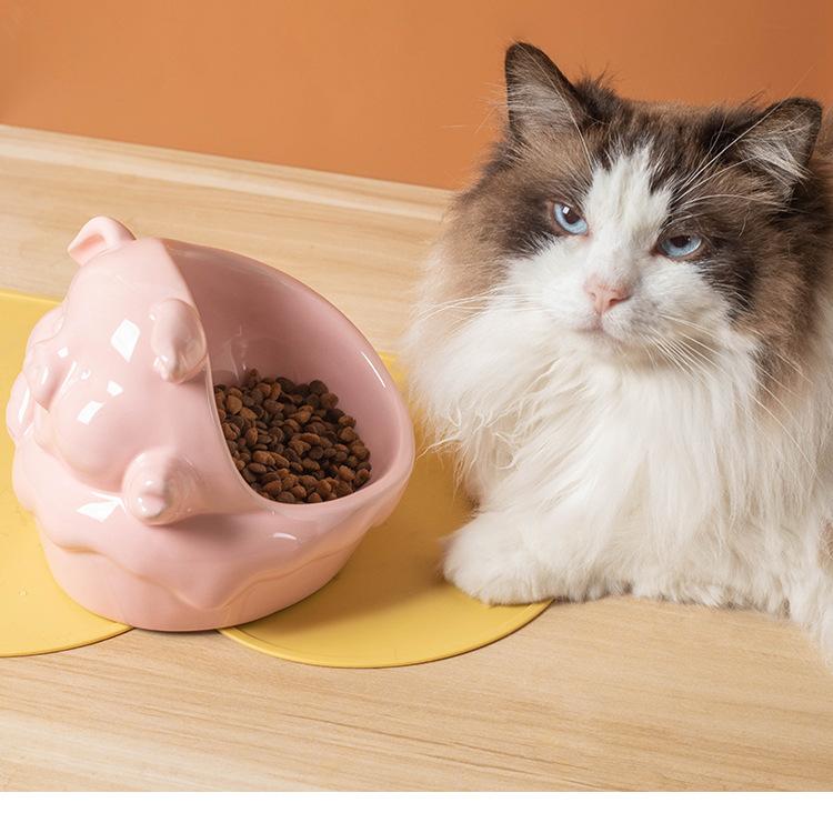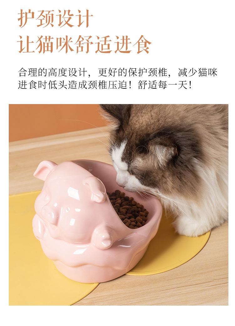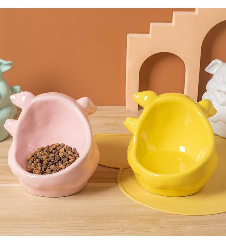 Cuenco de cerámica para mascotas (2024), gran diámetro, con protección oblicua para el cuello, cuenco de arroz para gatos y perros, serie de animales de dibujos animados.