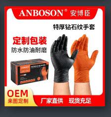 Guantes desechables sin polvo gruesos Ambochen, guantes de nitrilo resistentes al desgaste para la industria electrónica de procesamiento de alimentos.