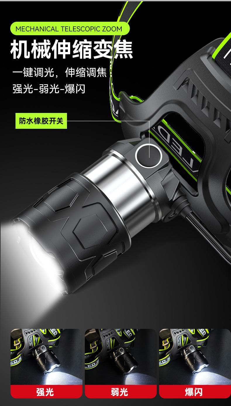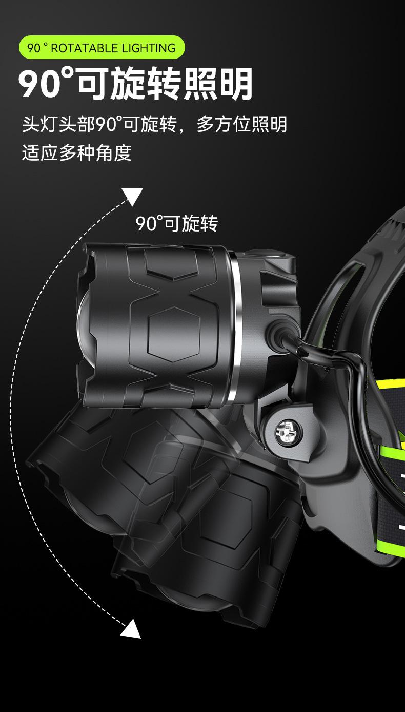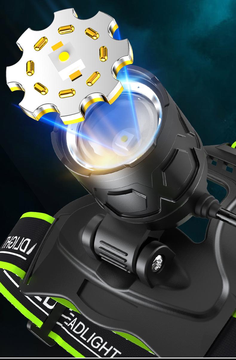 Nuevo faro LED de pesca nocturna con zoom recargable por USB, lámpara de pesca nocturna para exteriores, luz potente y de largo alcance, transfronterizo