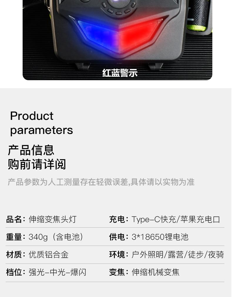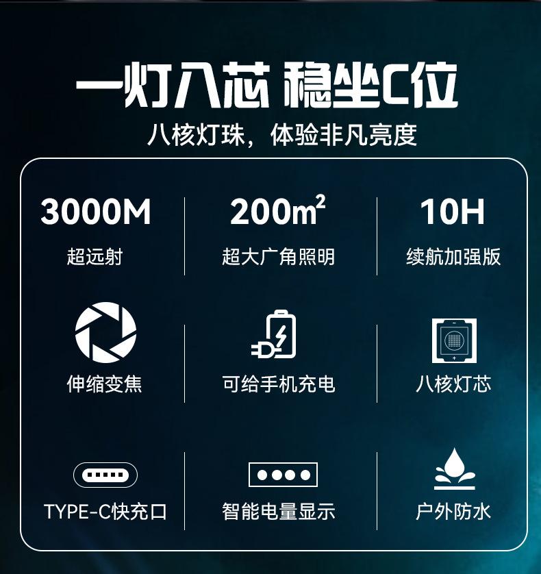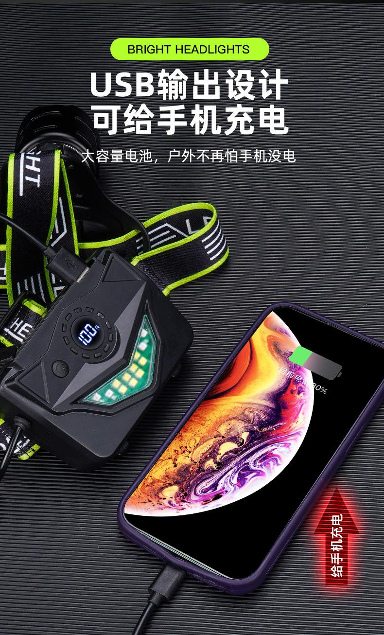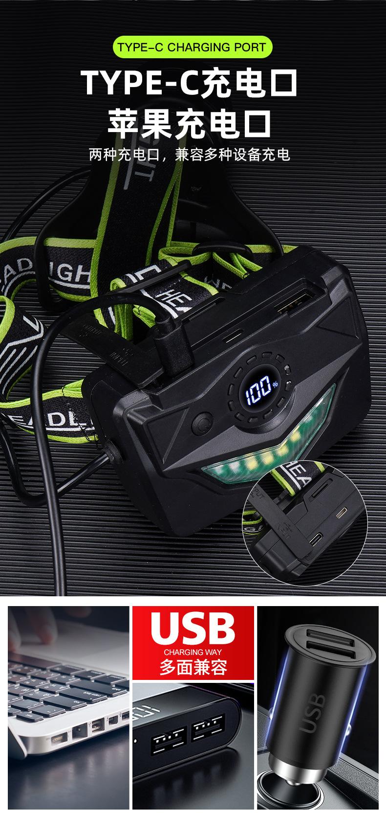 Nuevo faro LED de pesca nocturna con zoom recargable por USB, lámpara de pesca nocturna para exteriores, luz potente y de largo alcance, transfronterizo