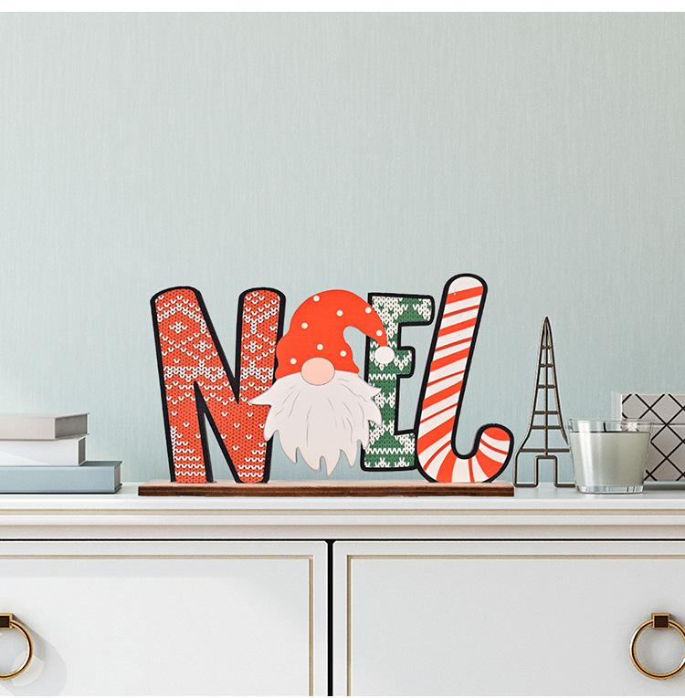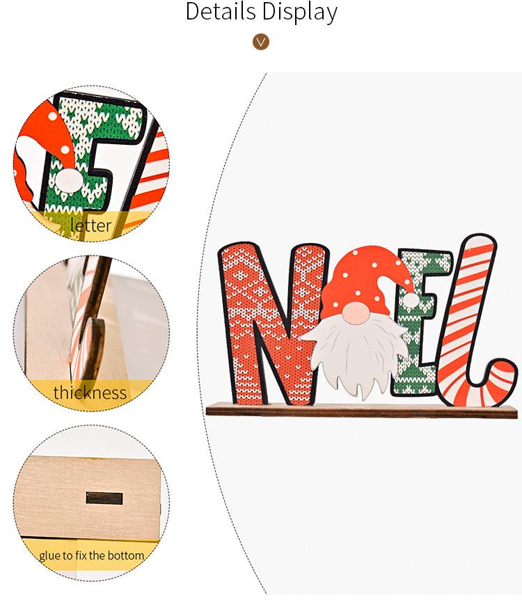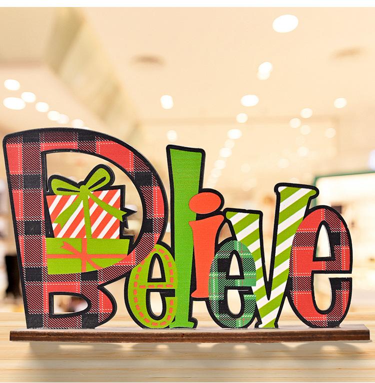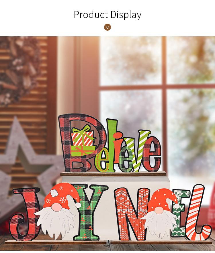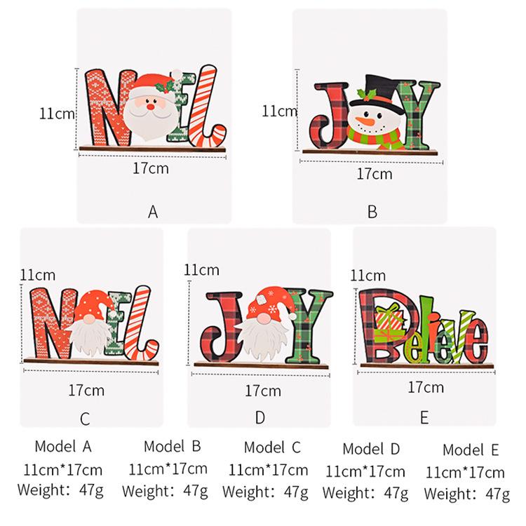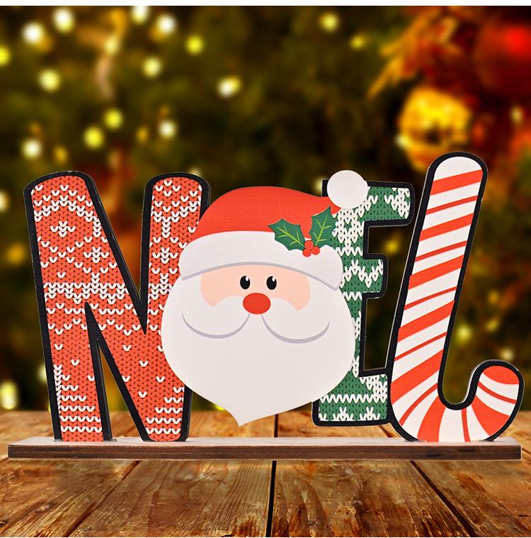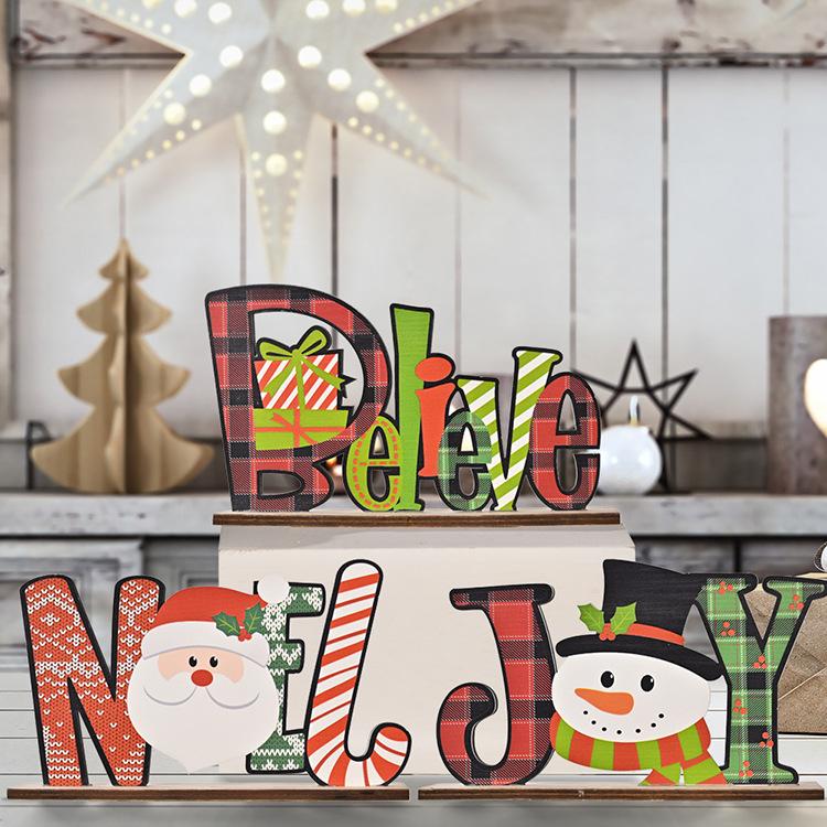 Nuevos productos transfronterizos, decoración navideña, adornos navideños de madera con letras, adornos navideños de escritorio con impresión creativa.