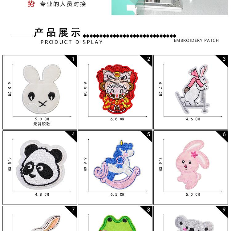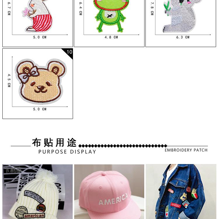 Pegatinas anchas para bordado por computadora, pegatinas de tela con lindos animales de dibujos animados, pegatinas de tela bordada, accesorios de ropa, pegatinas bordadas, pegatinas de parche