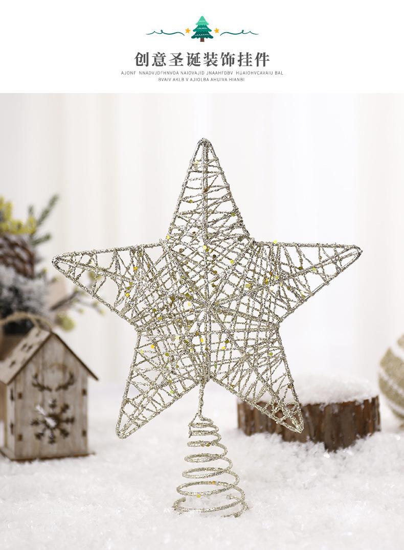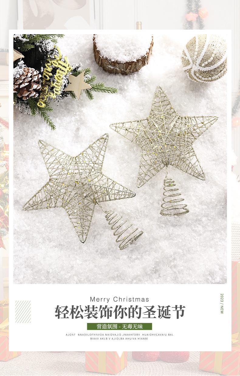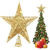 Nuevos suministros de decoración de estrella en la parte superior del árbol de Navidad Estrella de cinco puntas dorada tridimensional Estrella en la parte superior del árbol Decoración de escena navideña