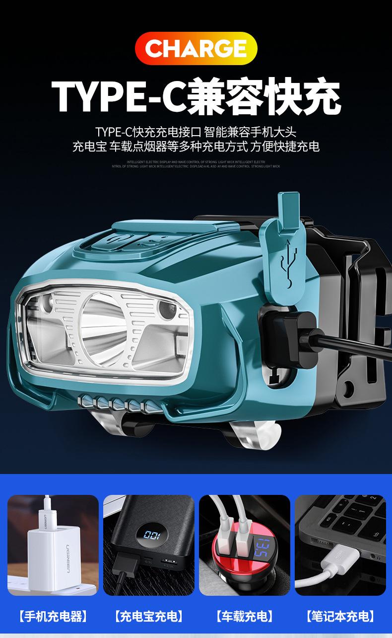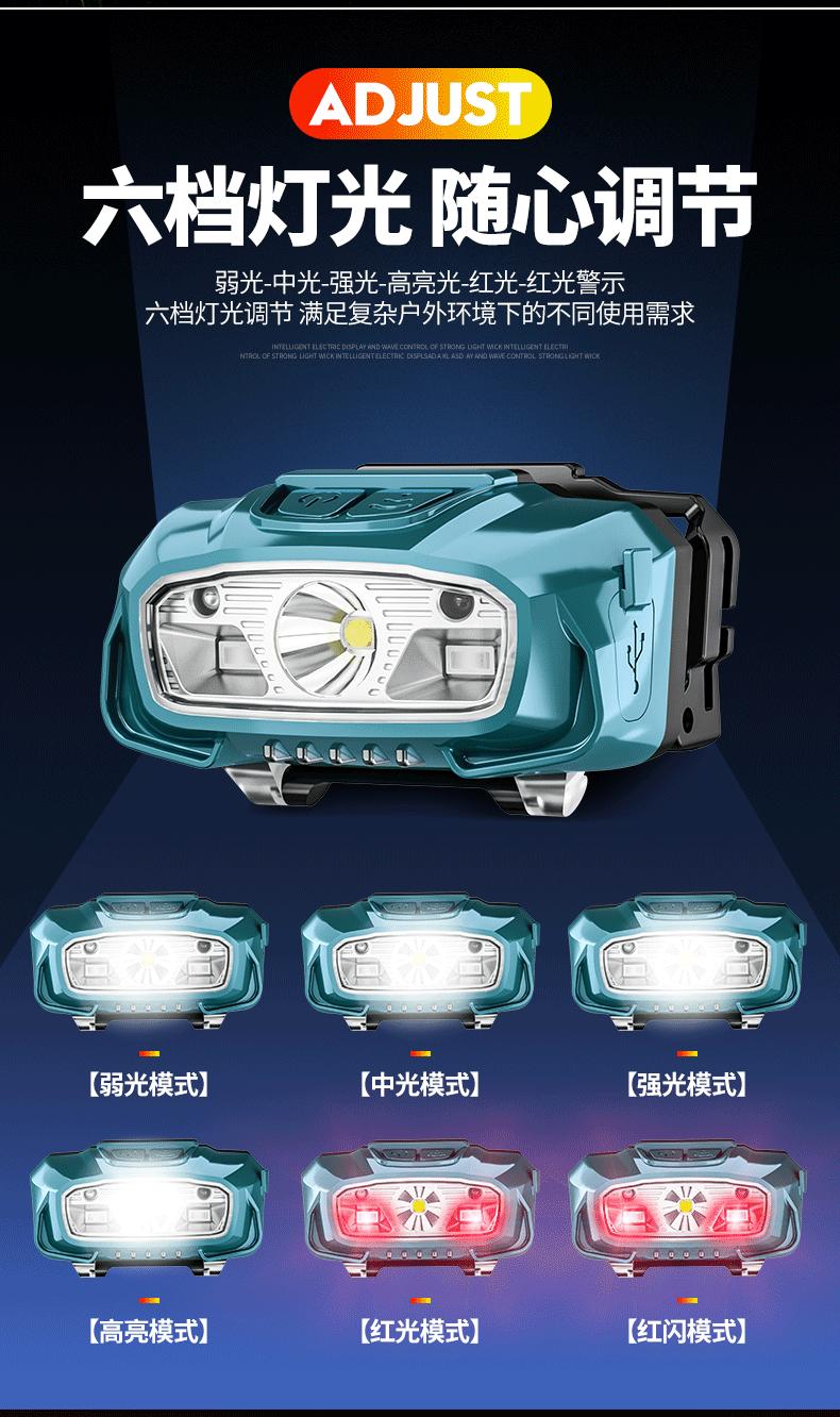 Lámparas LED impermeables para exteriores, luz potente, súper brillante, montadas en la cabeza, batería de larga duración, carga, faros de inducción, luces de pesca nocturna, venta al por mayor