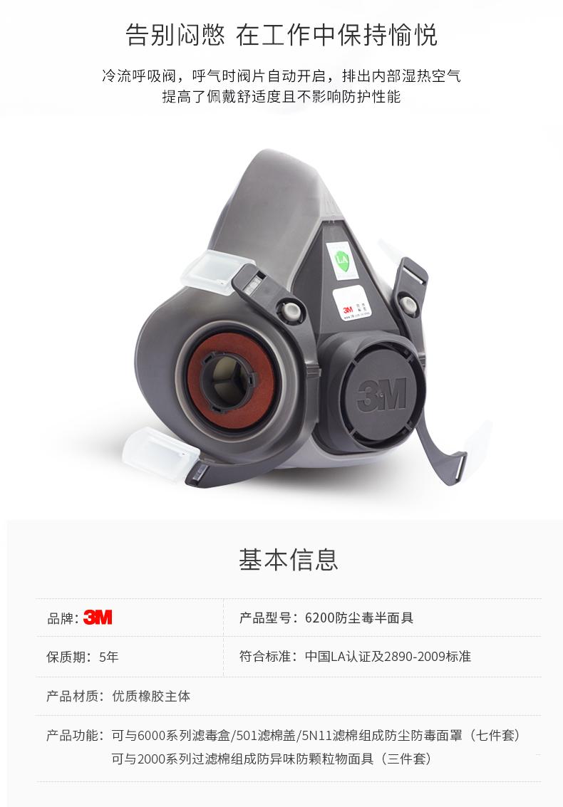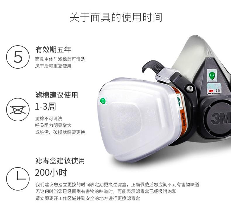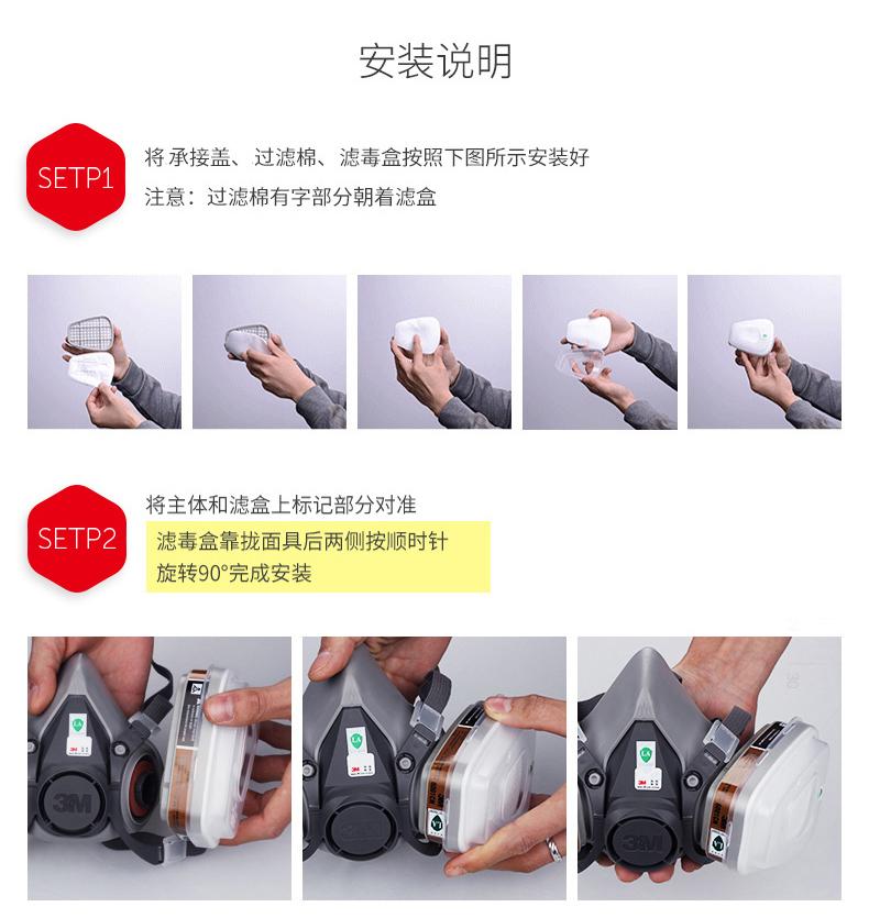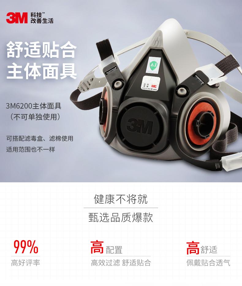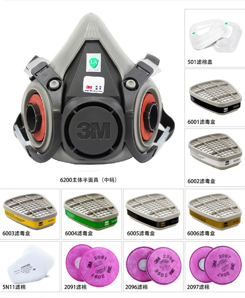 Máscara de gas 3M 6200 de media cara, de un solo cuerpo, antipolvo industrial con filtro de caja, filtro de algodón combinado