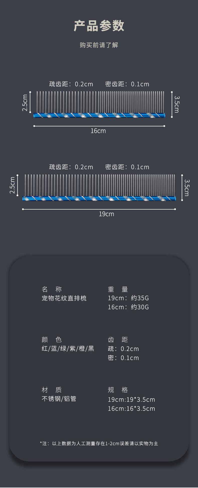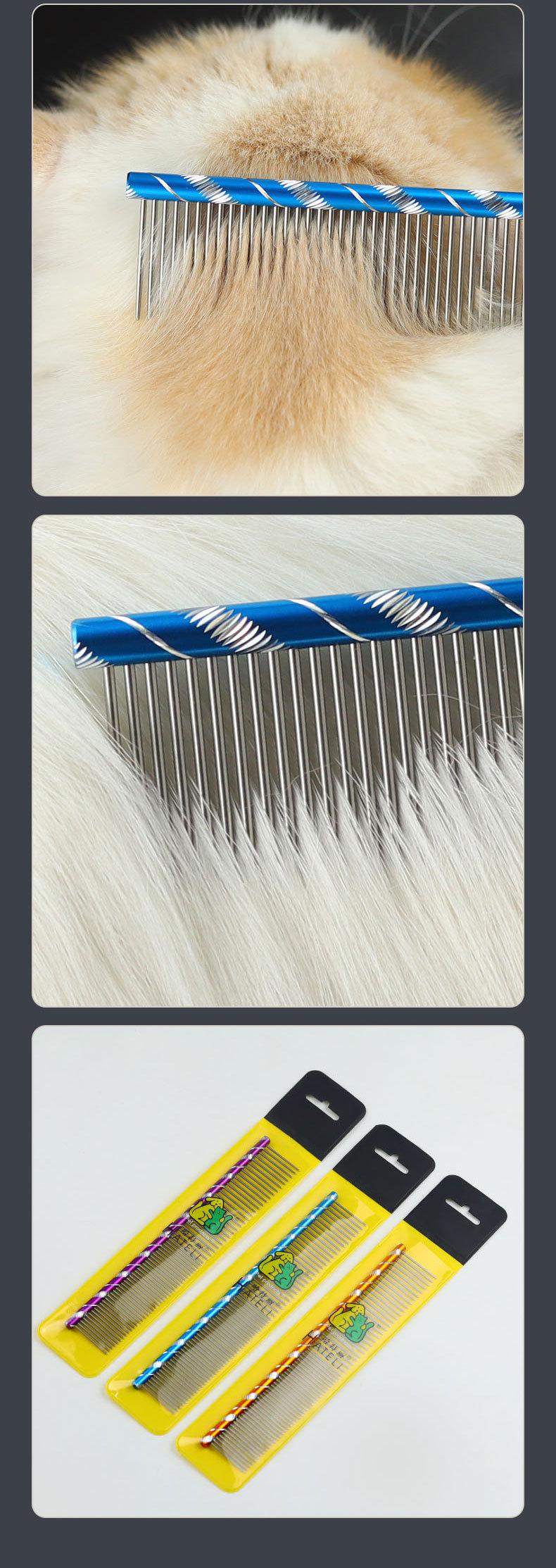 Peine para Mascotas Peine Recto de Acero Inoxidable Peine para Perro Peine de Aseo de Acero Inoxidable Peine de Acero Cepillo para Mascotas 16cm