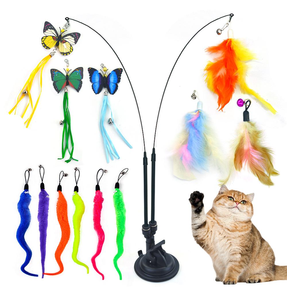 Juguete para gatos transfronterizo nuevo, cabeza de repuesto de mariposa oruga, ventosa fuerte, divertido palo para gatos, juguete para gatos, traje