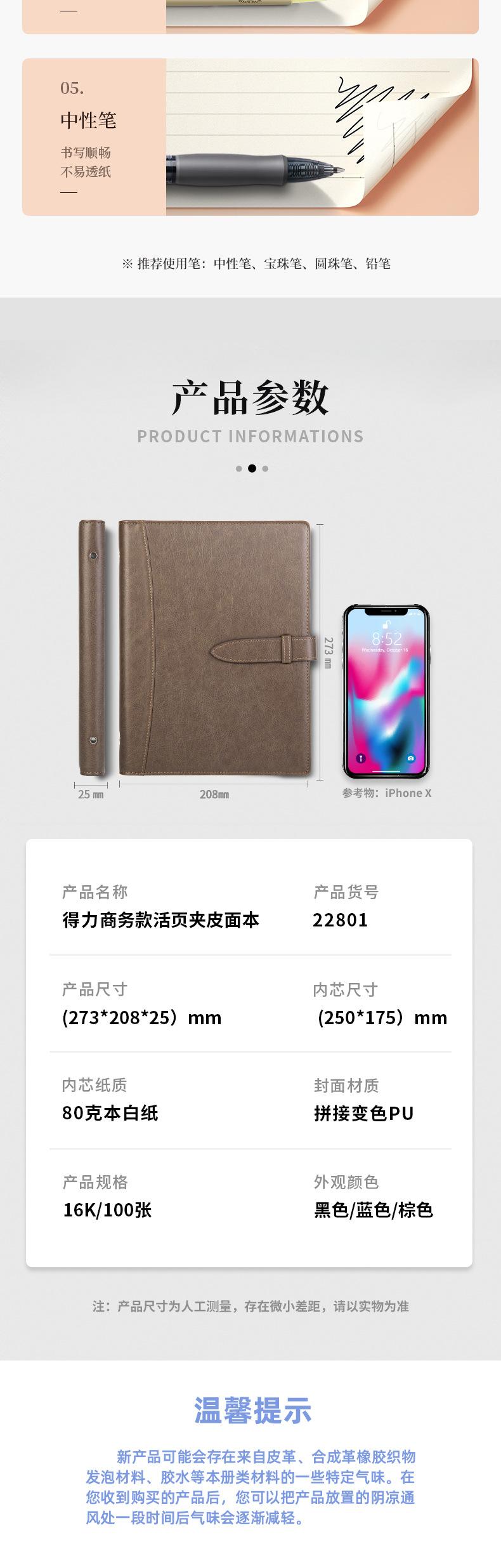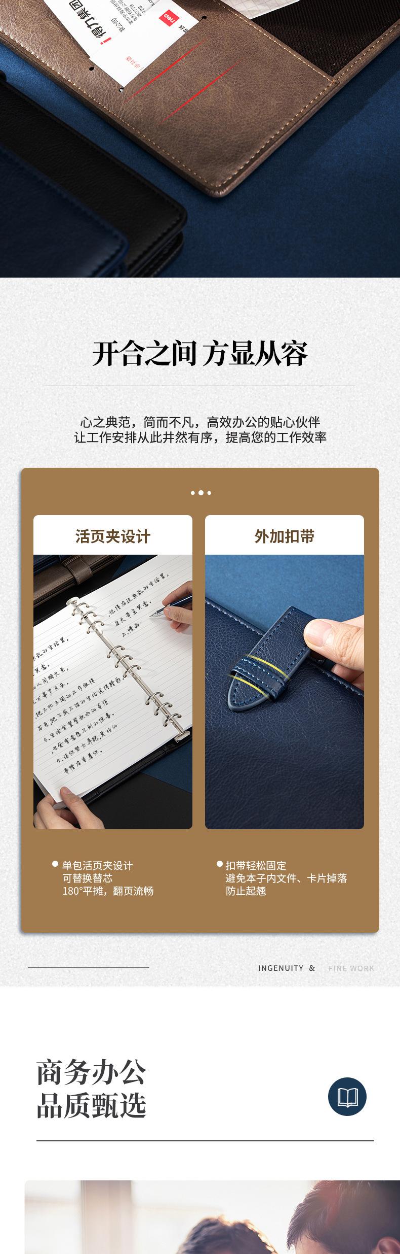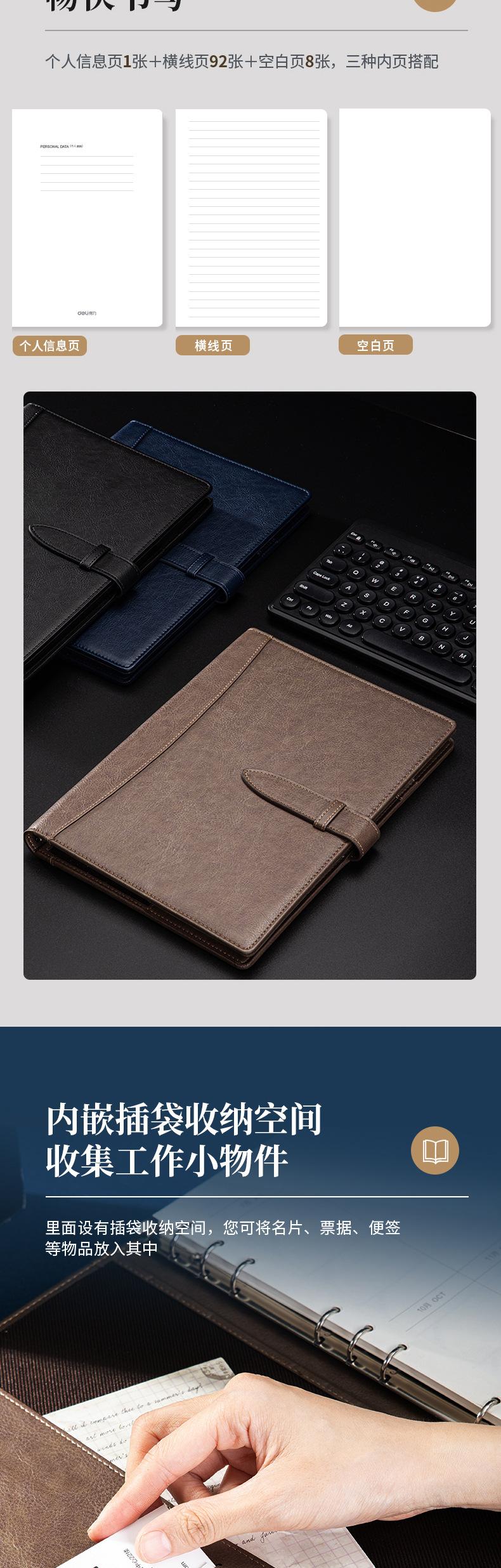 Deli 22801 Bloc de notas para oficina, cuaderno de negocios, sencillo, de cuero, hojas sueltas, libro de registro de reuniones, 100