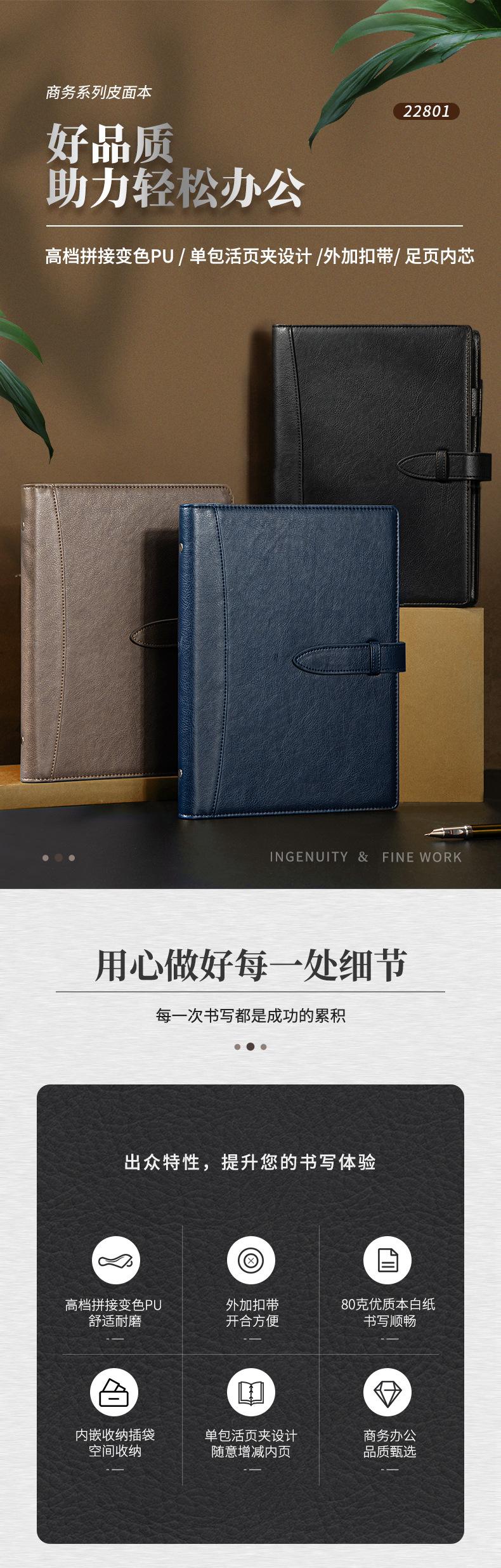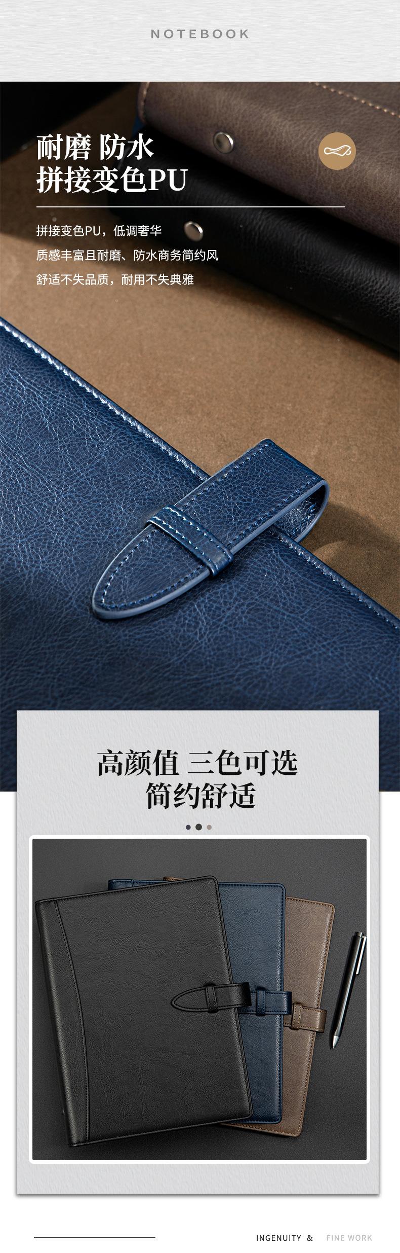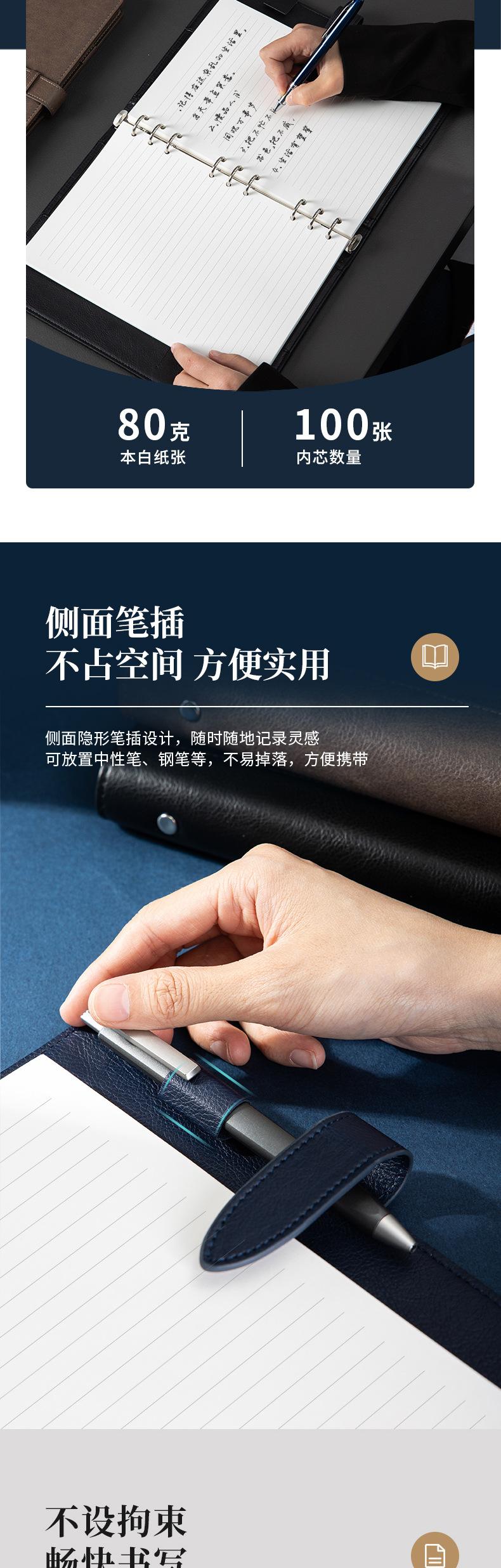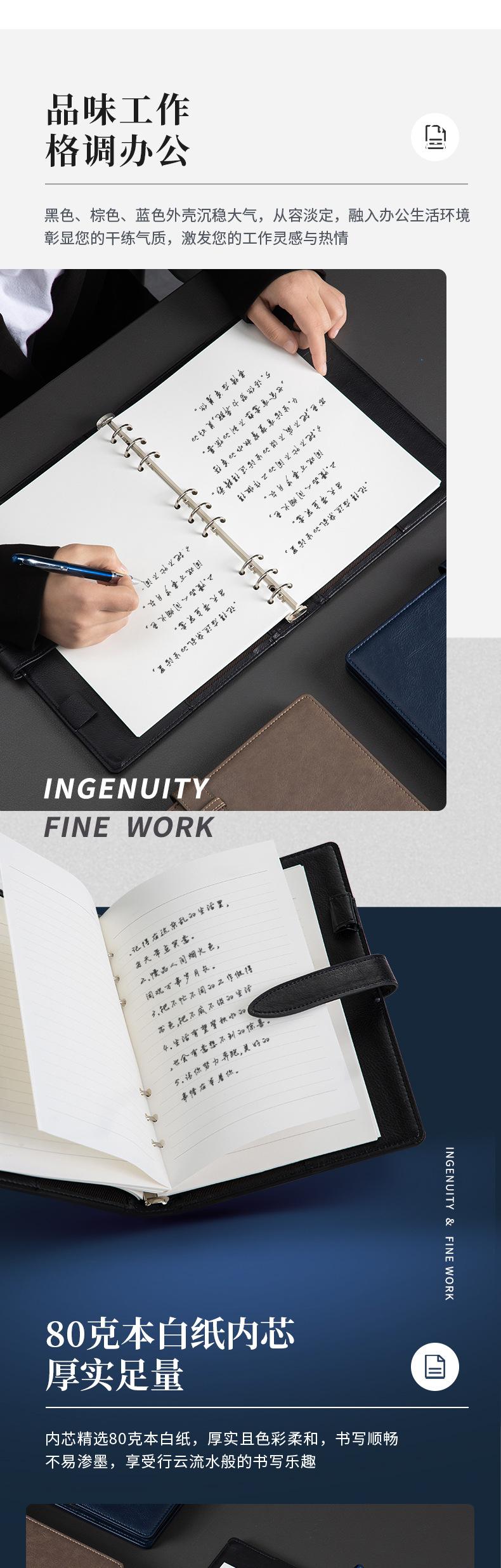 Deli 22801 Bloc de notas para oficina, cuaderno de negocios, sencillo, de cuero, hojas sueltas, libro de registro de reuniones, 100