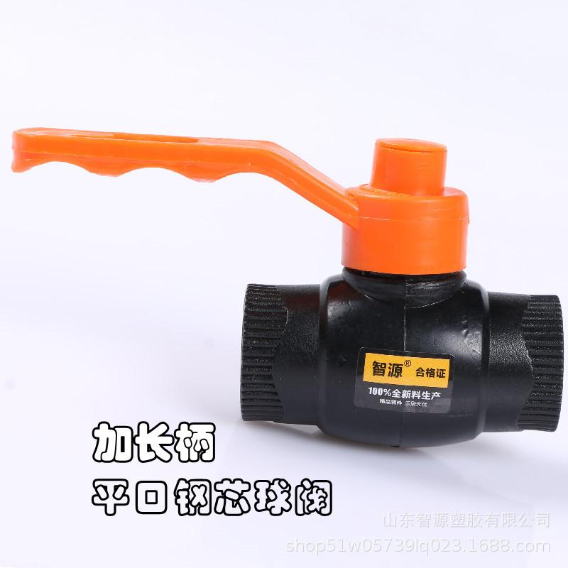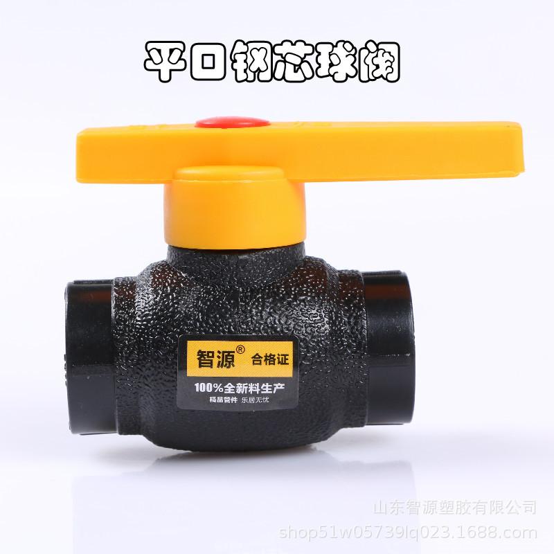 Válvula de bola con núcleo de acero plano de HDPE, válvula de bola de plástico, válvula de bola de agua del grifo para riego de jardín, válvula de conmutación, válvula de compuerta