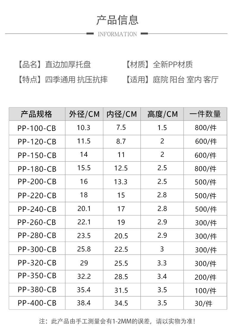PP100 10.3*7.5*1.5cm, PP120 11.5*8.7*2cm, PP150 14*11*2cm, PP180 15.5*12.5*2.5cm, PP200 16*13.3*2.5cm, PP220 1...