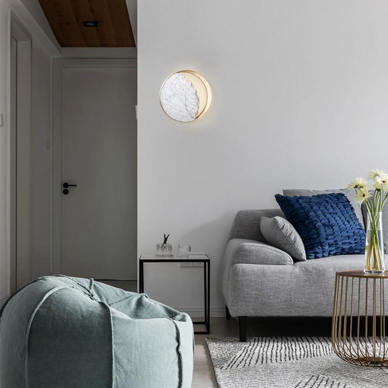 Lámpara de pared posmoderna personalizada para sala de estar, dormitorio, mármol natural, Moon Hotel, lámparas de pasillo LED para pared