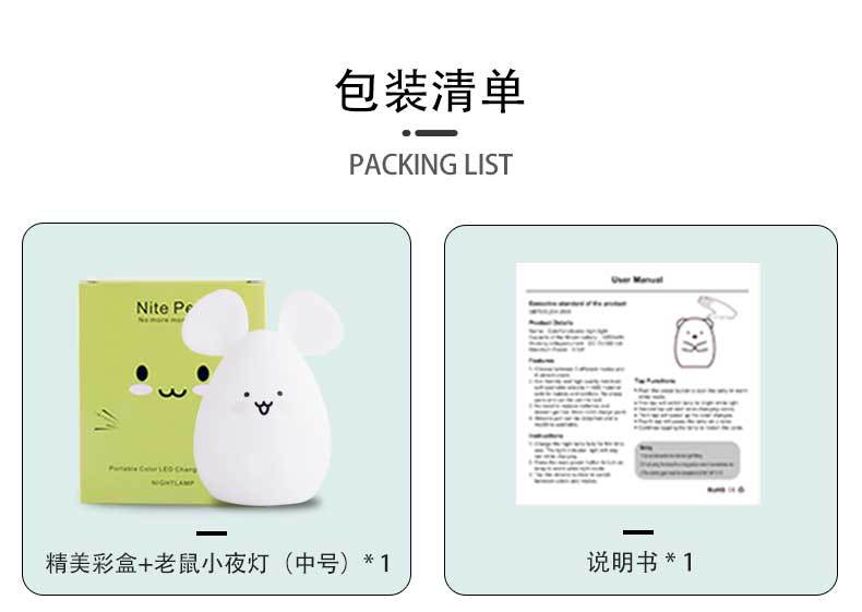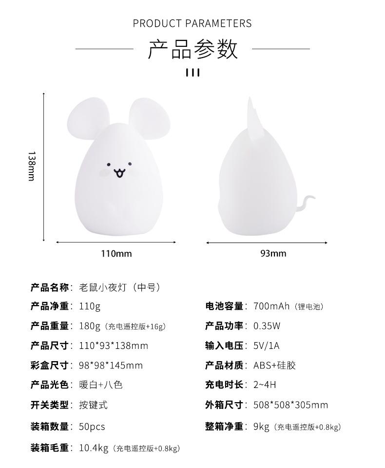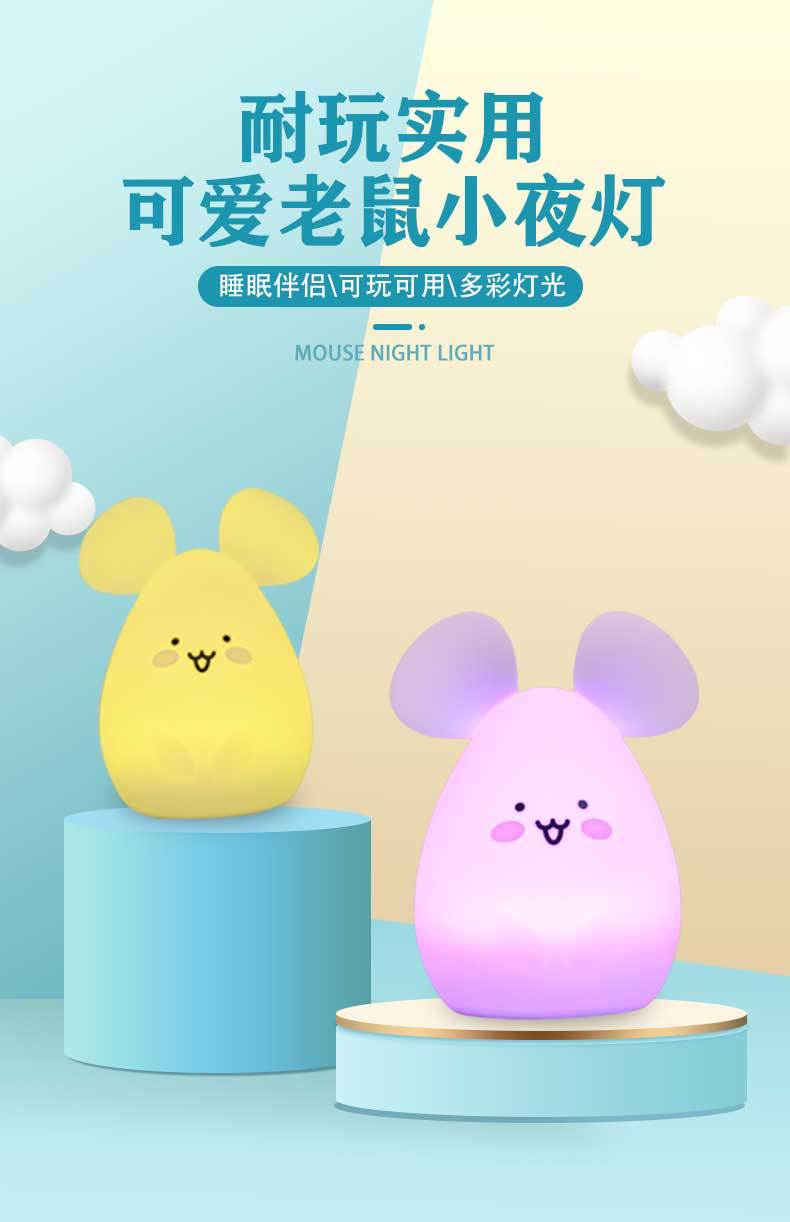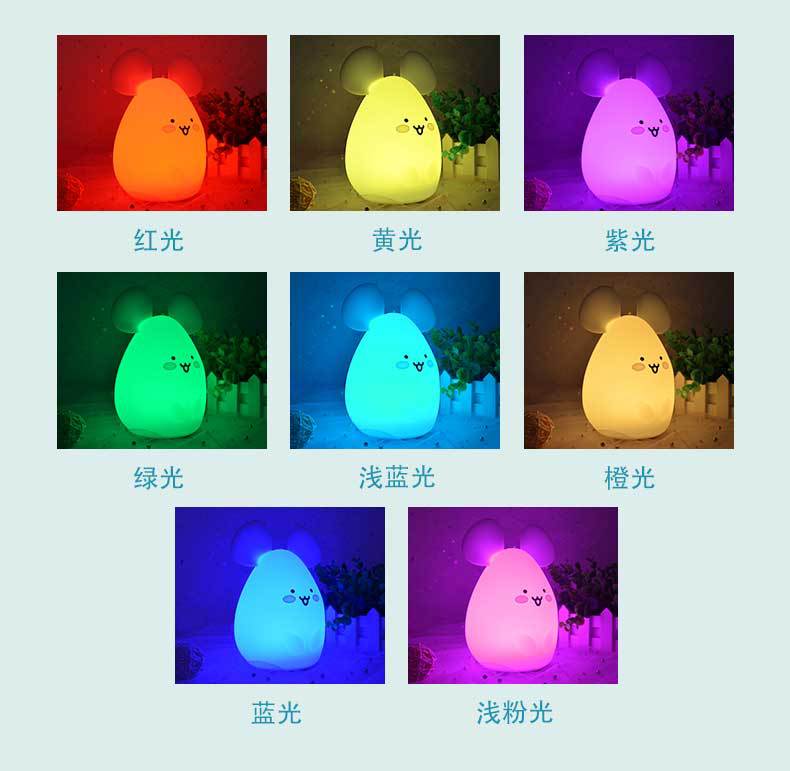 Luz Nocturna de Silicona con Forma de Ratón Luz Cambiante de Color