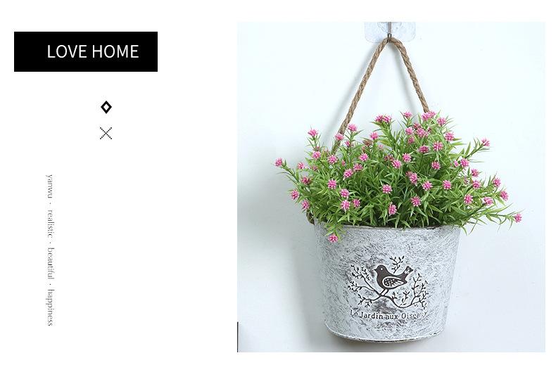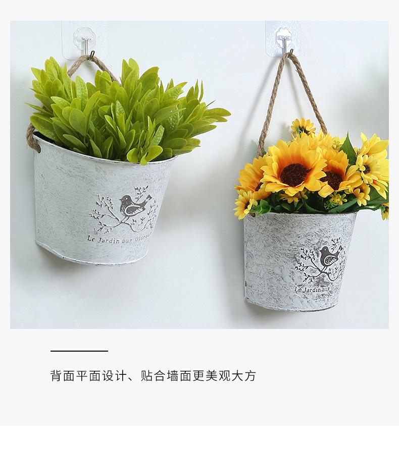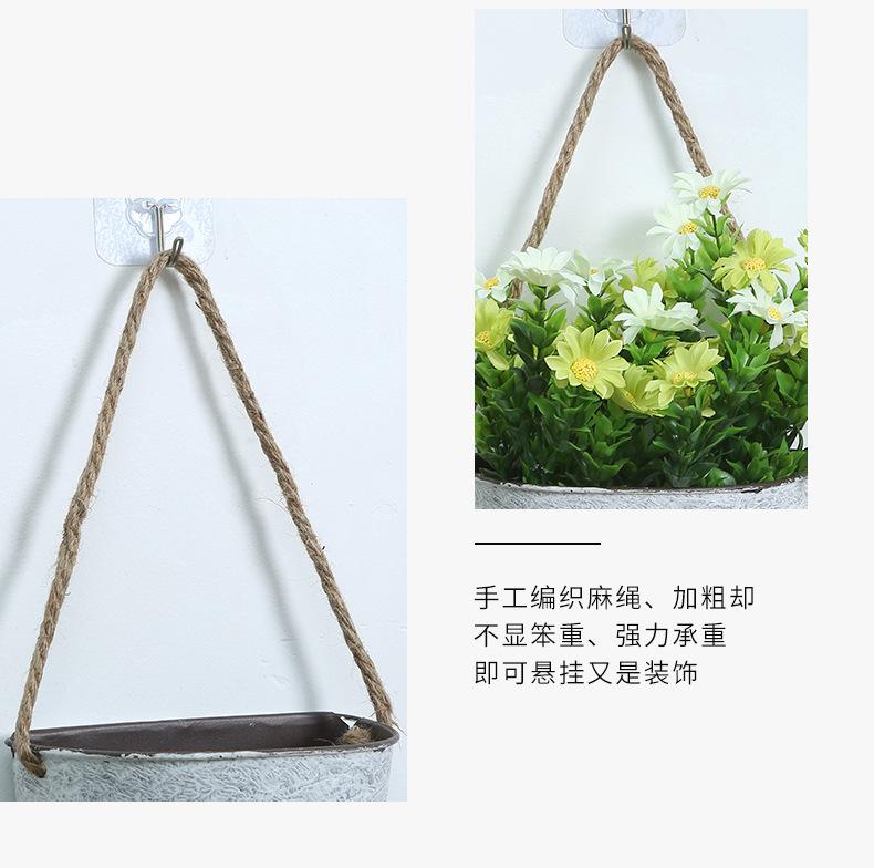Decoración de pared, maceta colgante de hierro para balcón, plantación verde, rosa verde, cesta colgante de cuerda de cáñamo, semicírculo, cubo colgante