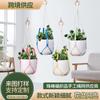 | Maceta creativa para jardinería transfronteriza, bolsa de red para plantas, cesta colgante para colgar, cuerda de algodón y lino tejida a mano |