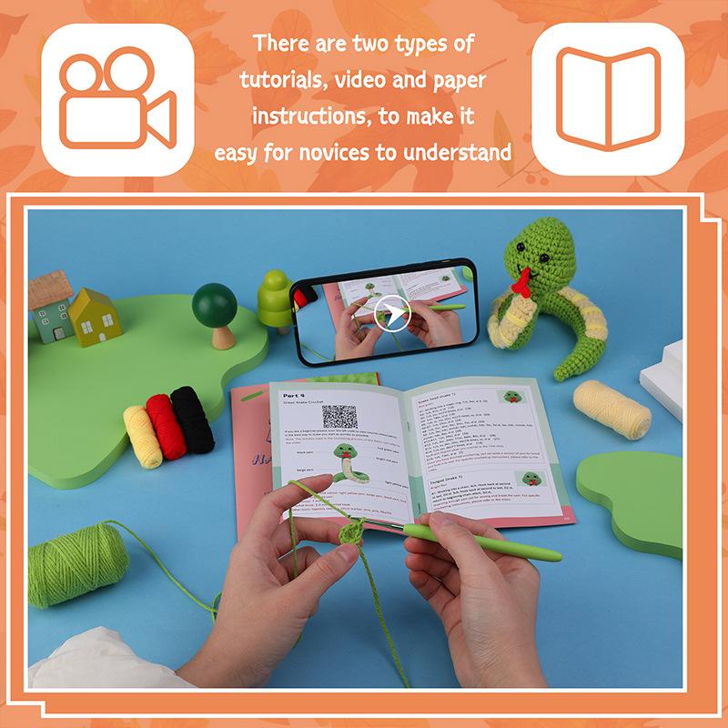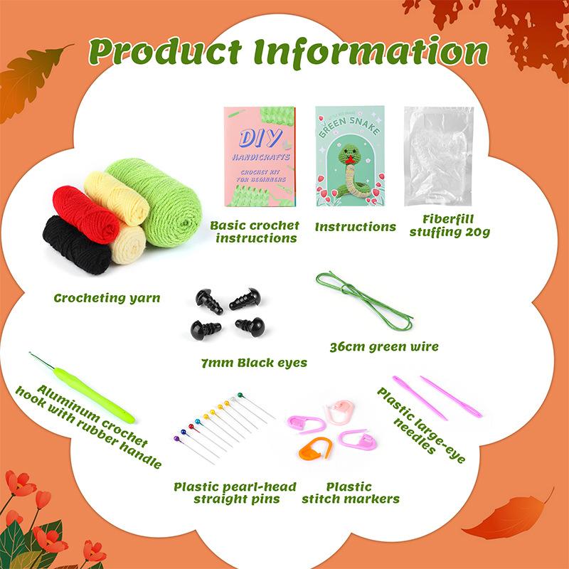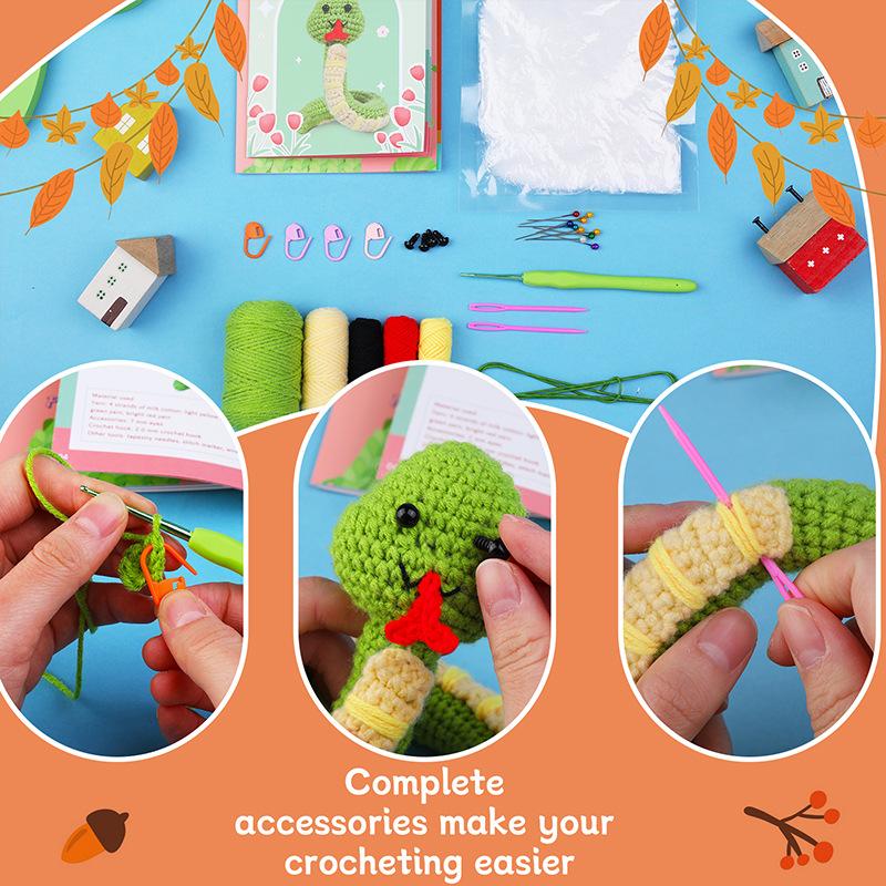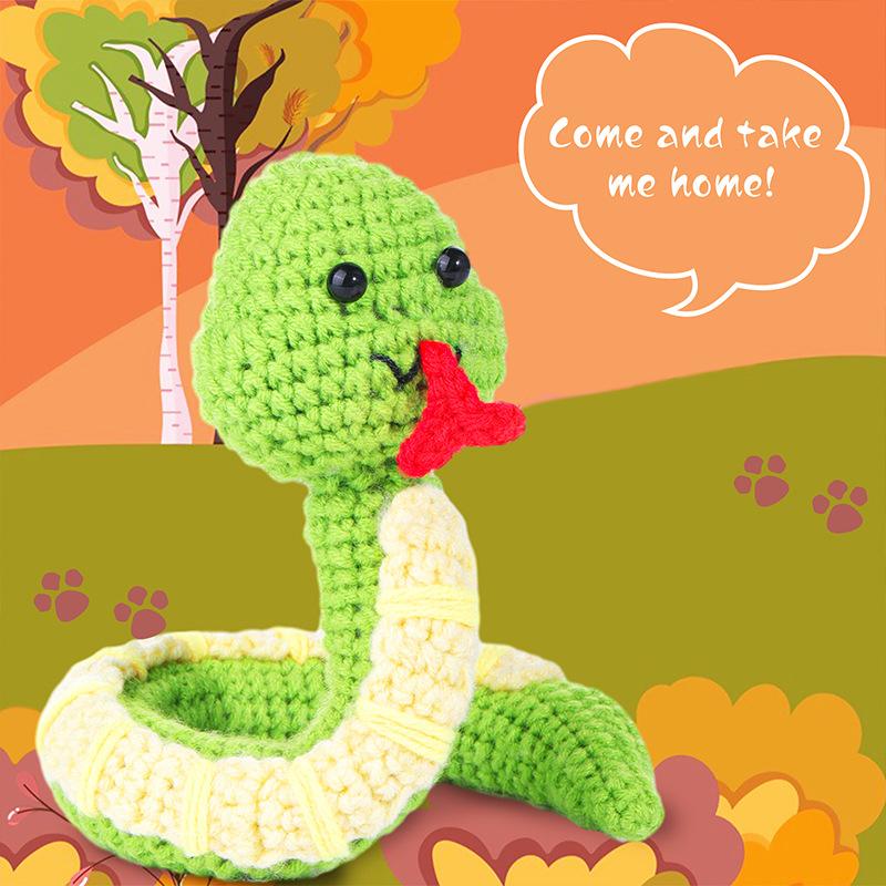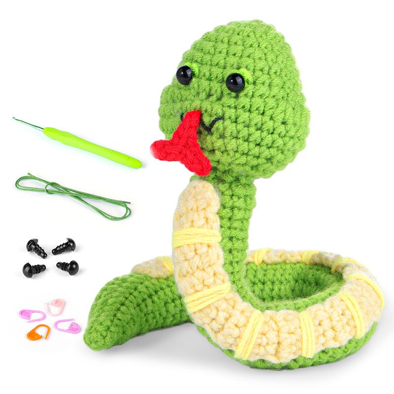 Paquete completo de material de crochet de lana de gran oferta de Amazon, serpiente verde pequeña, muñeca divertida tejida a mano DIY