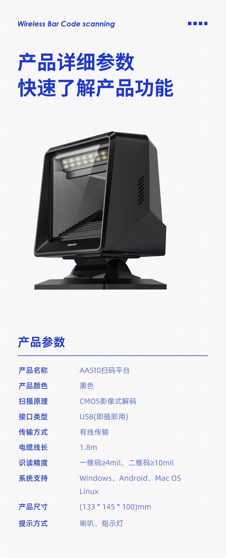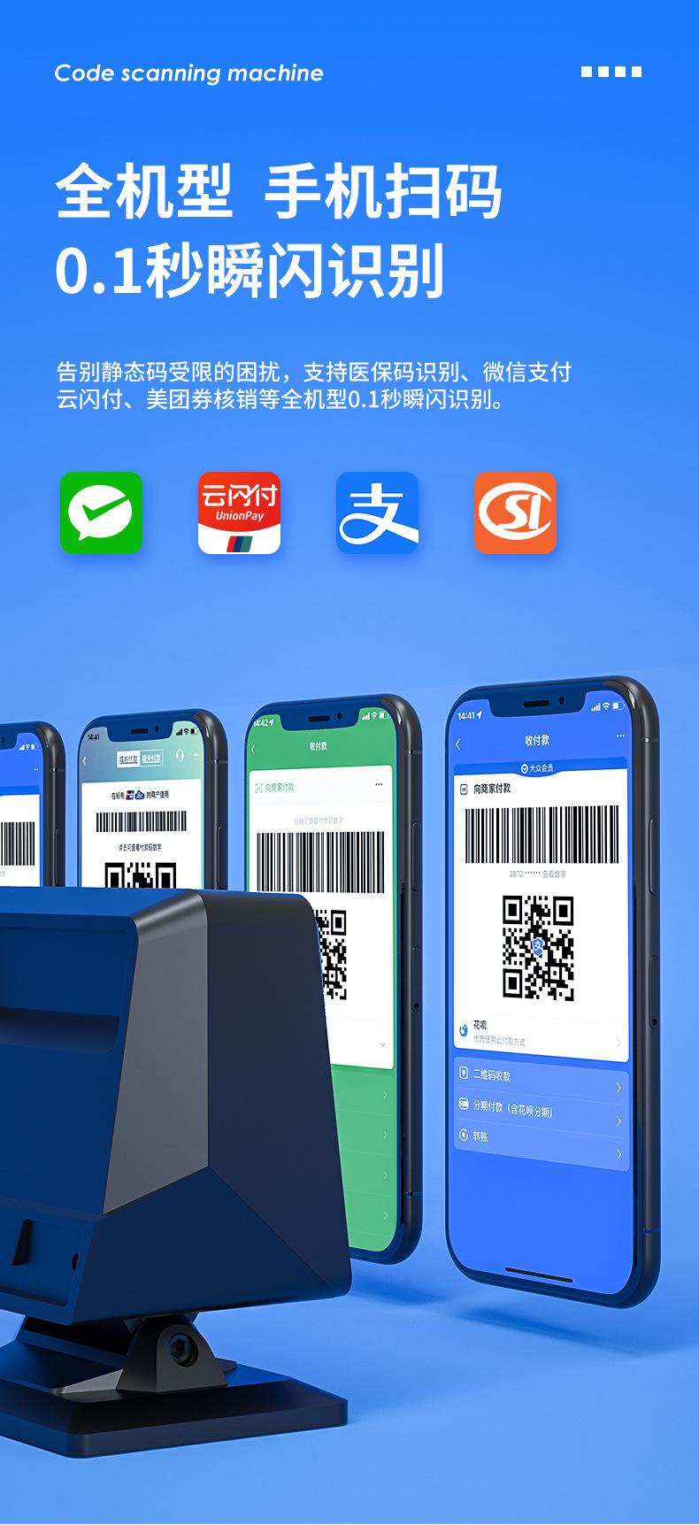 Escáner Deli AA510 escáner de código de escaneo supermercado pistola de escaneo inalámbrico código bidimensional caja registradora una plataforma de escaneo de código bidimensional