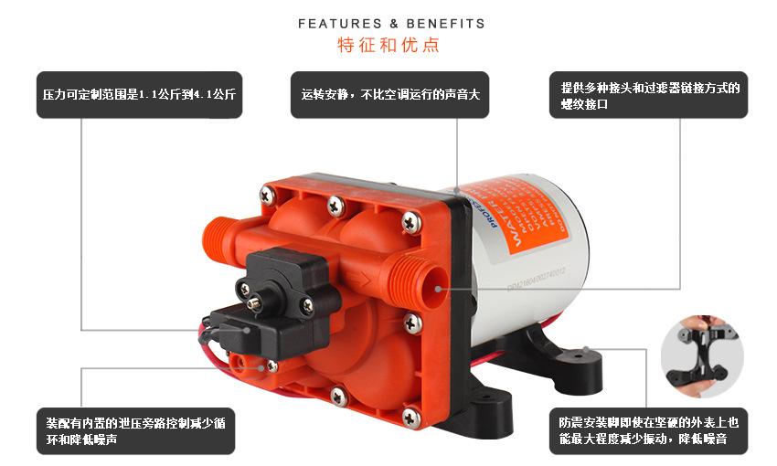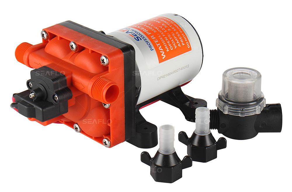 La bomba de diafragma serie 42 de SEAFLO es una nueva obra maestra de los productos de la marca SEAFLO. El cabezal de bomba de nuevo diseño está equipado con un motor eficiente. El volumen total es más pequeño y el funcionamiento es tan silencioso como el de un ventilador eléctrico de interior. El flujo a presión es suficiente para satisfacer el suministro de agua de 4 grifos al mismo tiempo. Ya sea para lavar o para ducharse, la experiencia confortable es la justa. El interruptor cuadrado recién actualizado mejora en gran medida el nivel de protección de sellado; la tarjeta de cable sellada hace que el terminal ya no se afloje; puede transportar una corriente mayor; la vida útil de arranque-parada se incrementa de 100.000 veces a 200.000 veces, logrando un gran salto en calidad. El interruptor de retorno y el presostato funcionan libremente. Cuando el flujo de agua es pequeño, el exceso de agua circula automáticamente en el cabezal de la bomba, reduciendo la activación frecuente del presostato y protegiéndolo eficazmente de daños. Equipada con un presostato inteligente, cuando se abre el grifo, la bomba de agua se enciende para suministrar agua; cuando se cierra el grifo, la bomba de agua se apaga y el agua se detiene, proporcionándole la misma libertad de agua que en casa. Debido a su pequeño tamaño, funcionamiento silencioso y combinación de interruptores inteligentes, se ha convertido en un producto ideal para sistemas de suministro de agua en equipos móviles como yates y vehículos recreativos desde su lanzamiento.