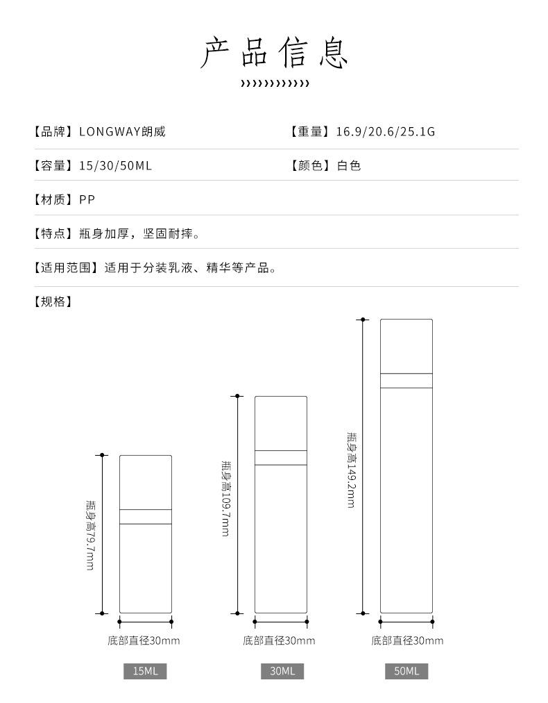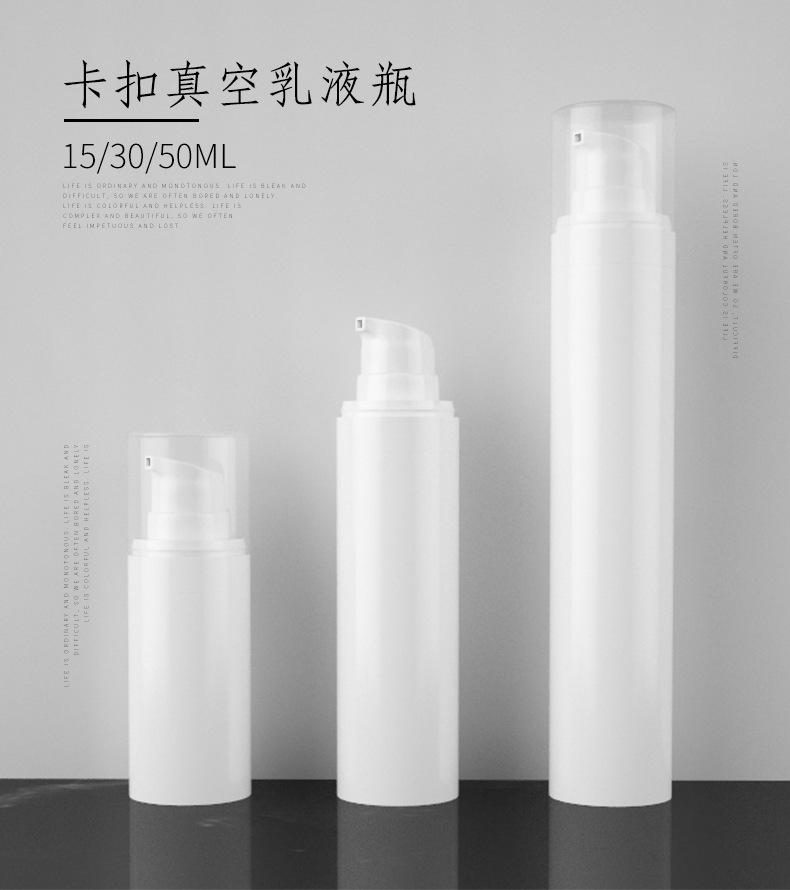 Botella de vacío con cierre de hebilla larga de 15 ml, botella de prensa, botella de crema, botella de loción, envase portátil de viaje, botella cosmética