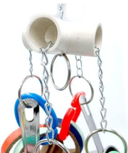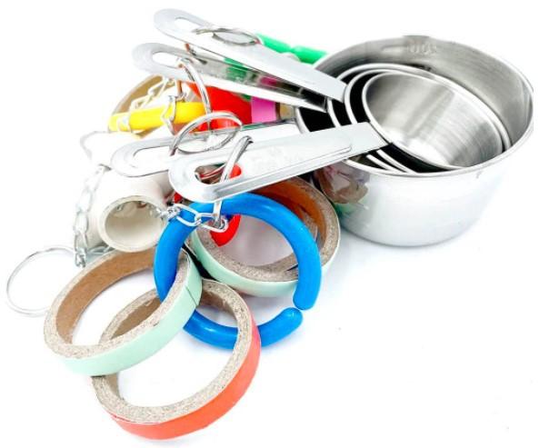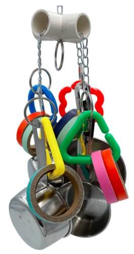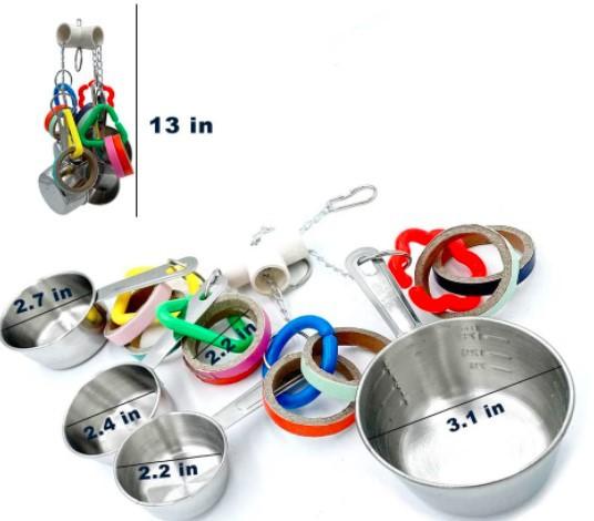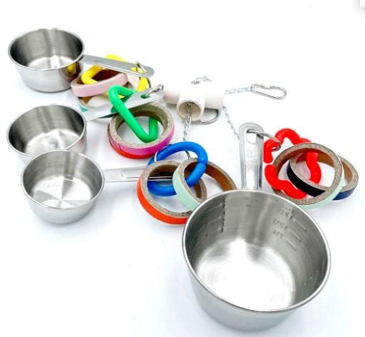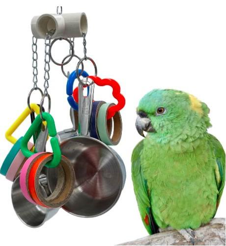 Juguete para morder loros, juguete para pájaros, acero inoxidable, cuatro macetas, cuerda