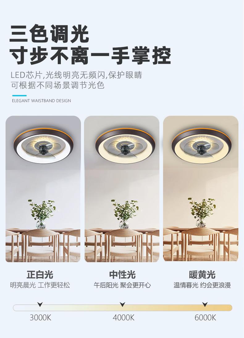 Ventilador de techo LED acrílico invisible para sala de estar, comedor y hogar, moderno y minimalista, inteligente, eléctrico