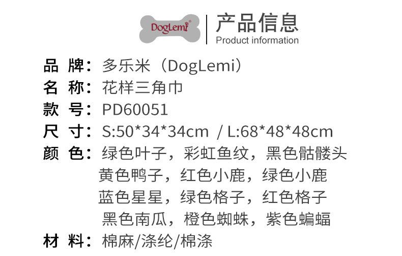 Guangzhou DogLemi Pet Products es una empresa profesional de productos para mascotas que integra diseño, I+D, producción y ventas. Sus productos incluyen ropa, zapatos, colchones, collares, correas, bandanas triangulares, juguetes, accesorios, etc.