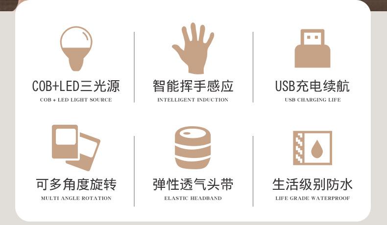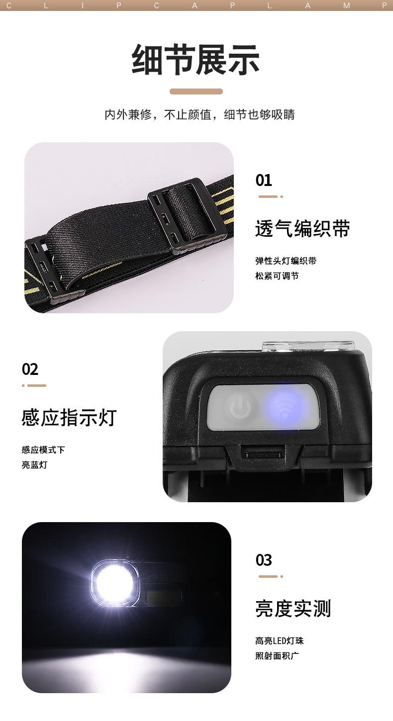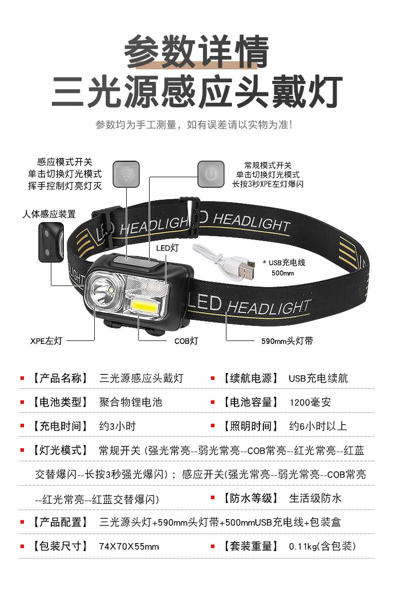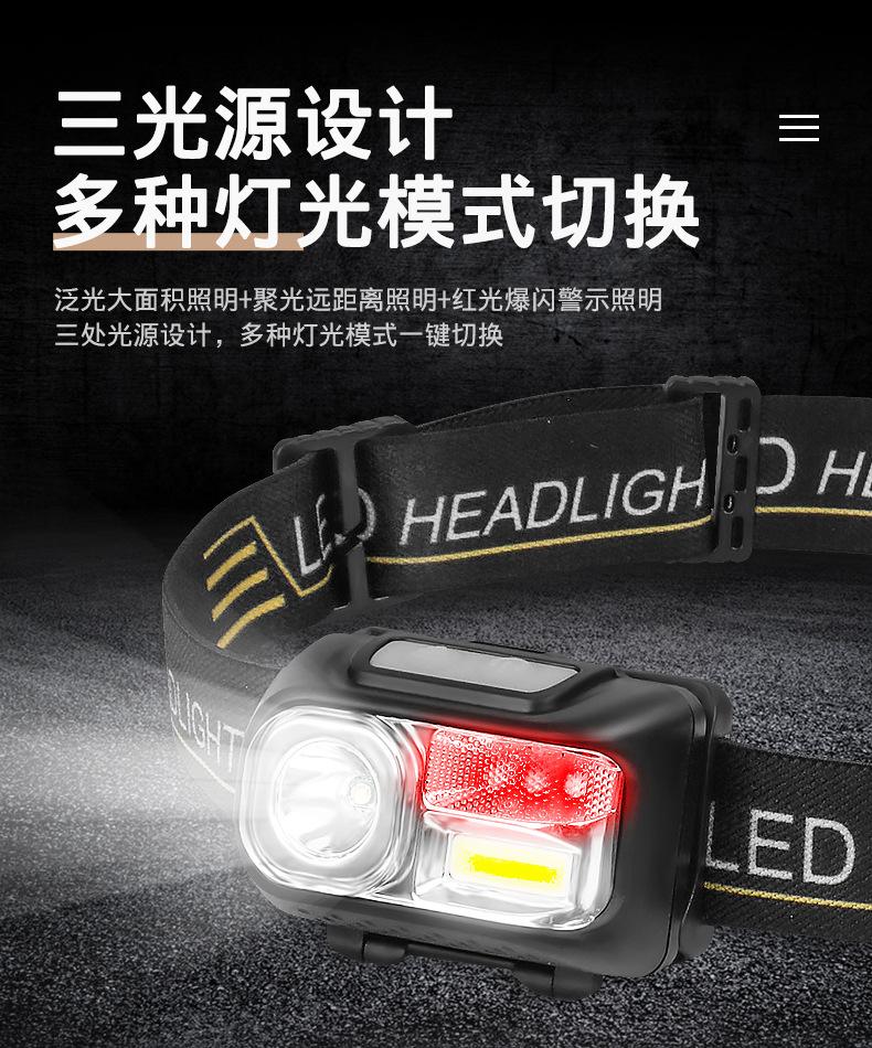 Faro de inducción, luz potente para exteriores, pesca nocturna, lámpara de minero recargable, linterna para correr de noche, iluminación de advertencia para acampar, luz de trabajo de emergencia
