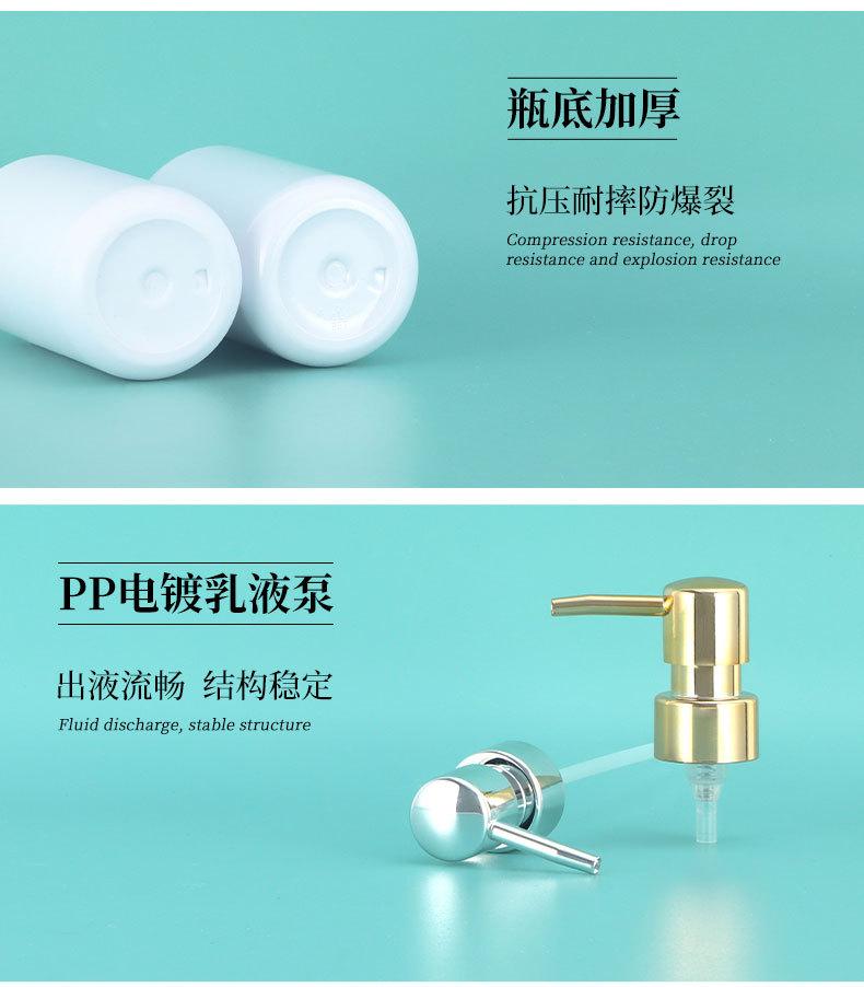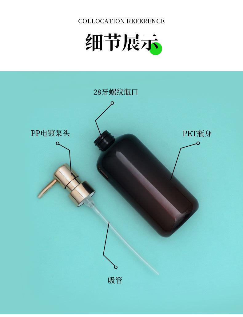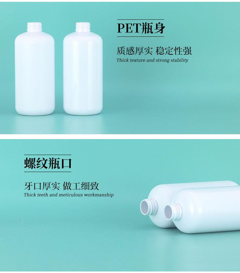 Botella de loción de 500 ml con pulsador redondo para el hombro, botella de gel de ducha, botella de champú, botella de cosméticos, subbotella de PET esmerilado