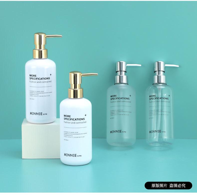 Compra Botella de loción con prensa redonda para el hombro de 500 ml, botella de gel de ducha, botella de champú, cosméticos, subembotellada en PET esmerilado al por mayor en Joom.pro