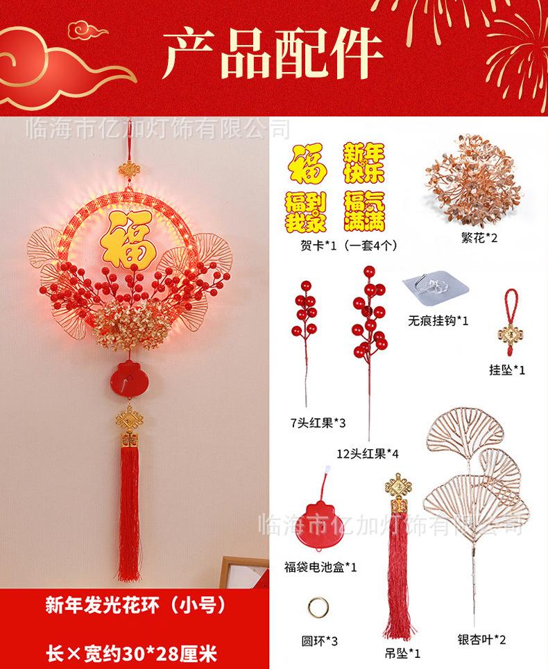 Luz decorativa LED del Año del Dragón 2024, guirnalda luminosa para el festival de primavera, personaje fu, sala de estar, ambiente decorativo, luz colgante festiva de fruta roja