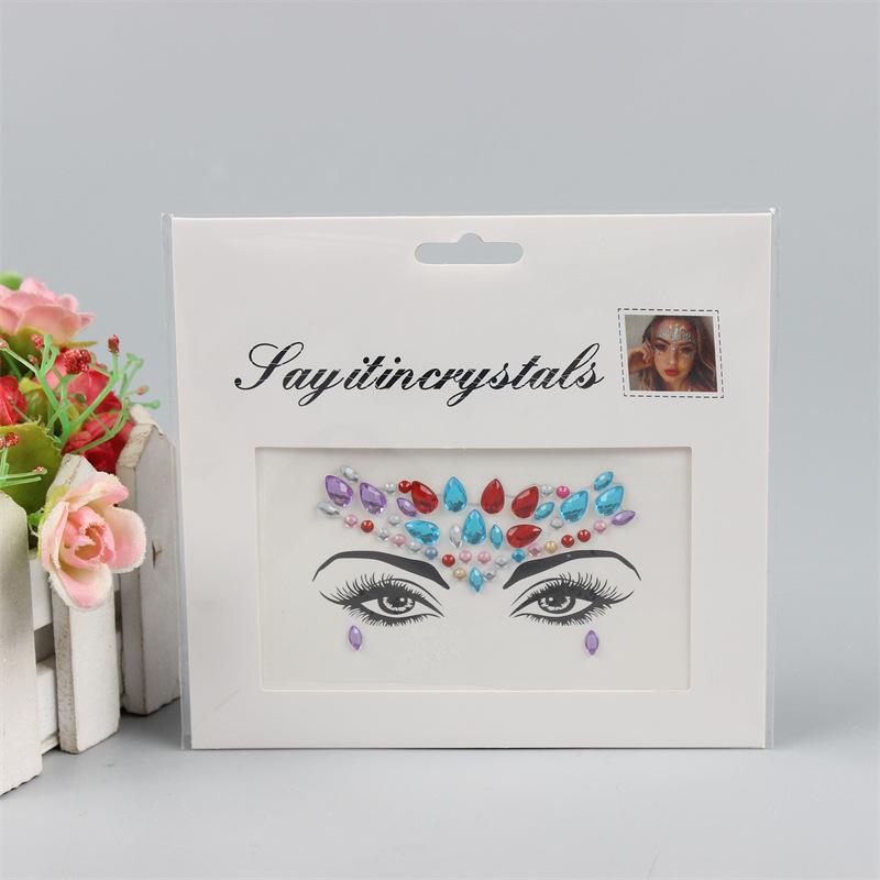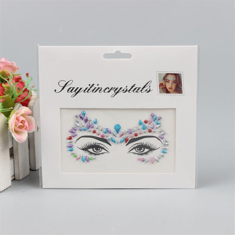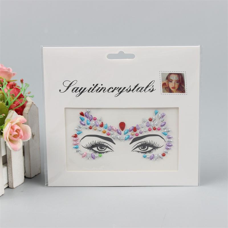 Adhesivos decorativos faciales para fiestas, impermeables, sin pegamento, tridimensionales, brillantes, de cristal de diamante, atmósfera, adhesivos coloridos