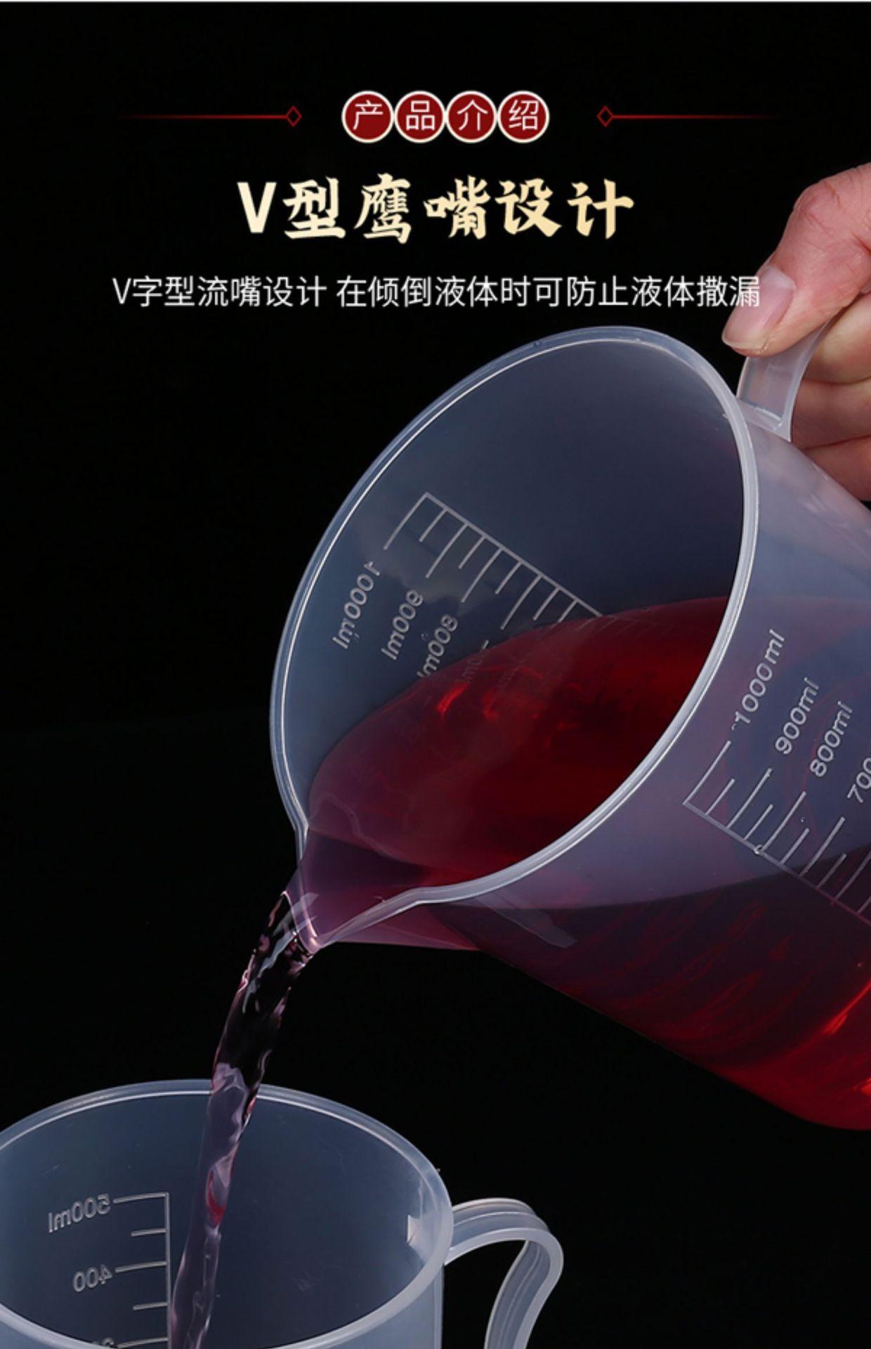 Taza medidora de plástico con escala Taza medidora de 500 ml Taza medidora de gran capacidad Transparente 1000 ml Taza medidora de plástico engrosado con asa