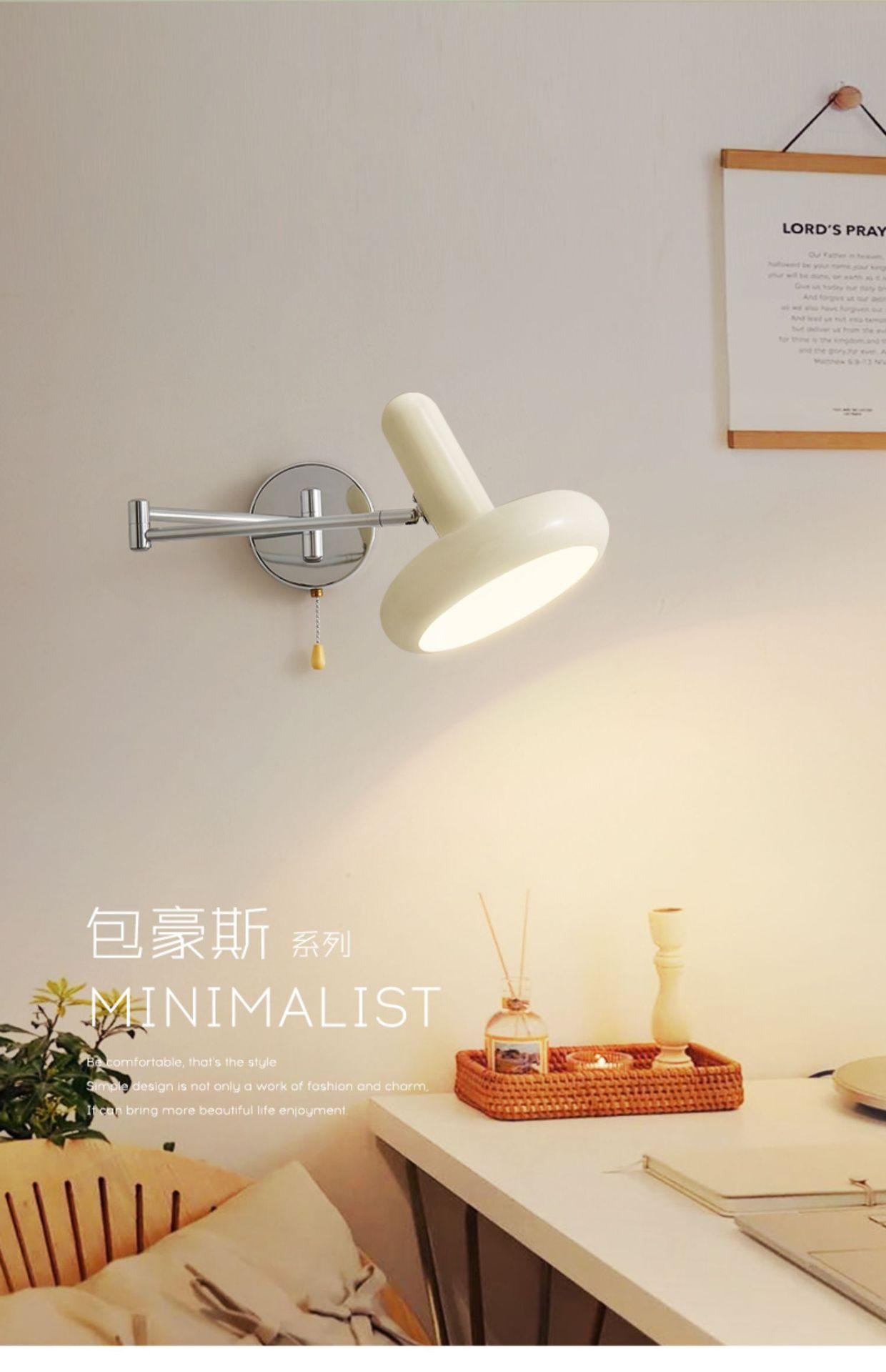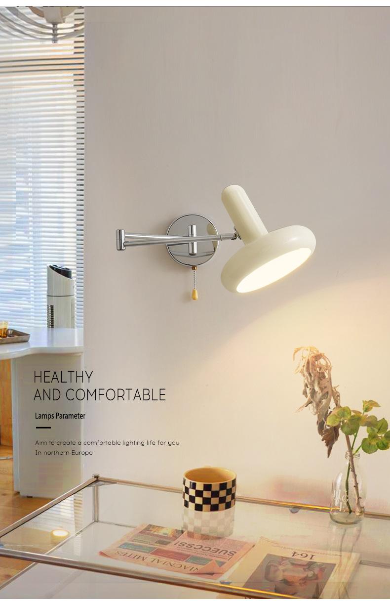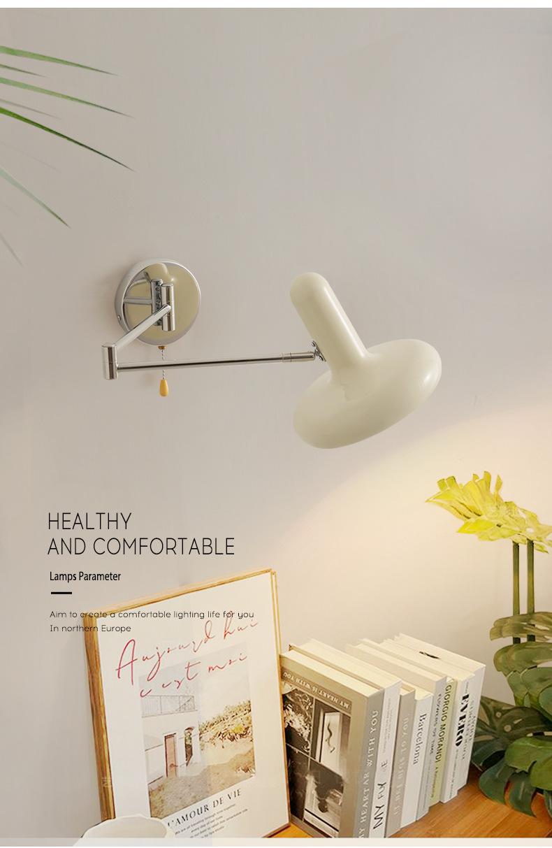Lámpara de pared de noche para dormitorio principal Bauhaus lámpara de pared para sala de estar crema viento retráctil estudio infantil lectura brazo basculante lámpara de pared