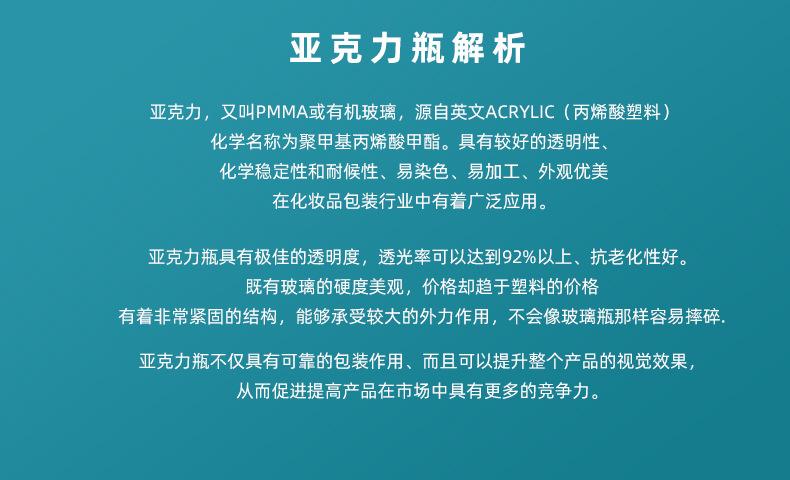 30g cream bottle; acrylic set bottle; acrylic, 50g cream bottle; acrylic set bottle; acrylic, 30ml lotion bott...