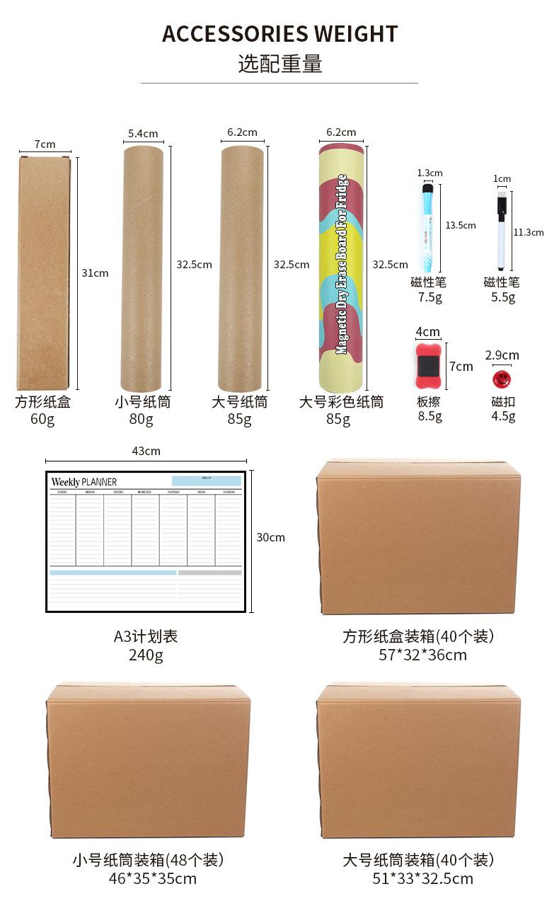 Square carton (31*7cm), small size paper tube (32.5*5.4cm), Large paper tube (32.5*6.2cm), Color large paper t...