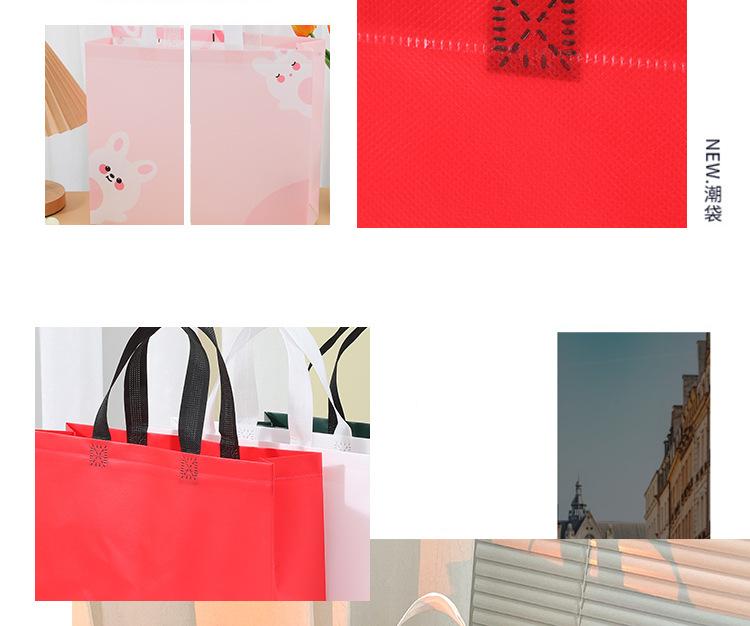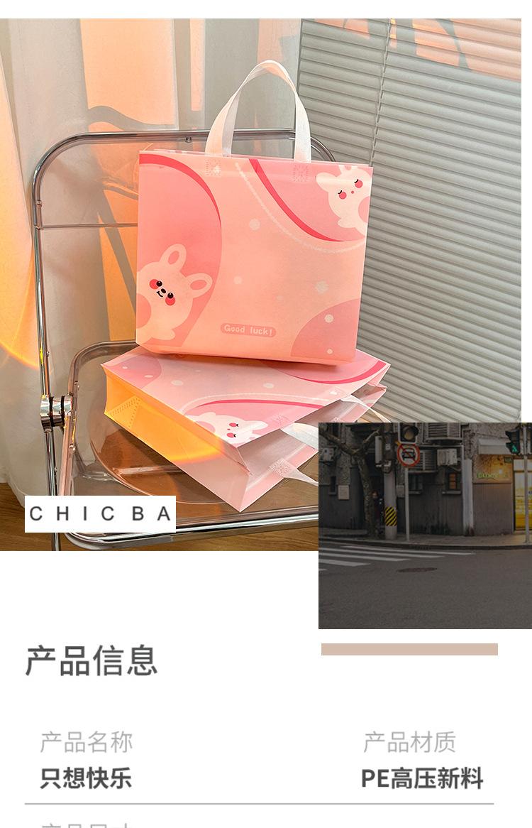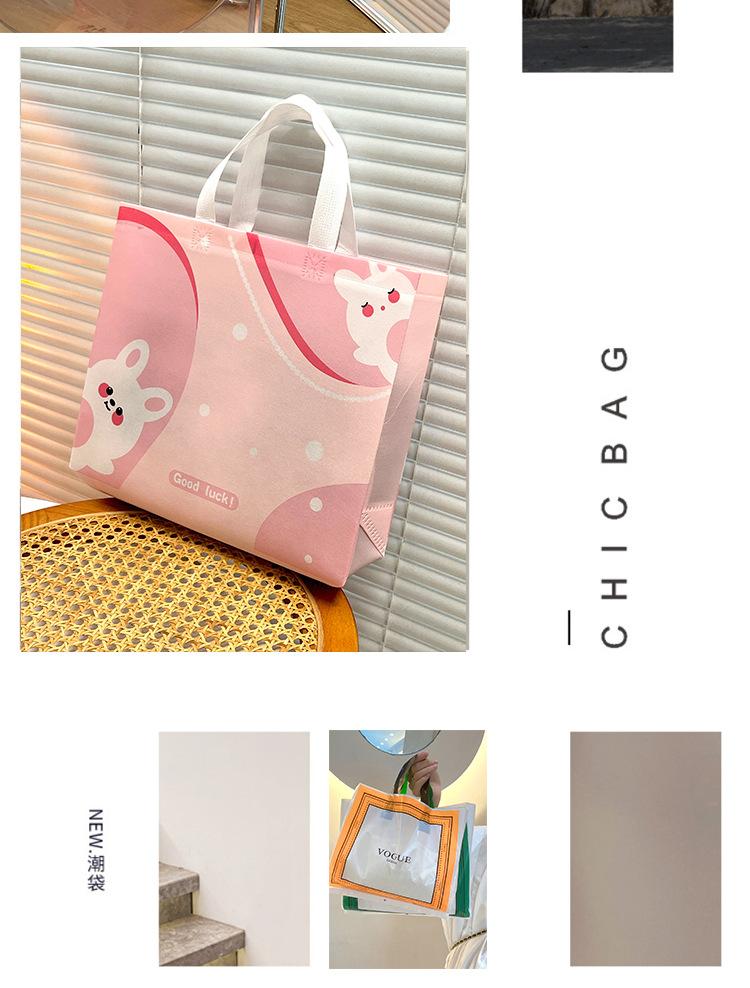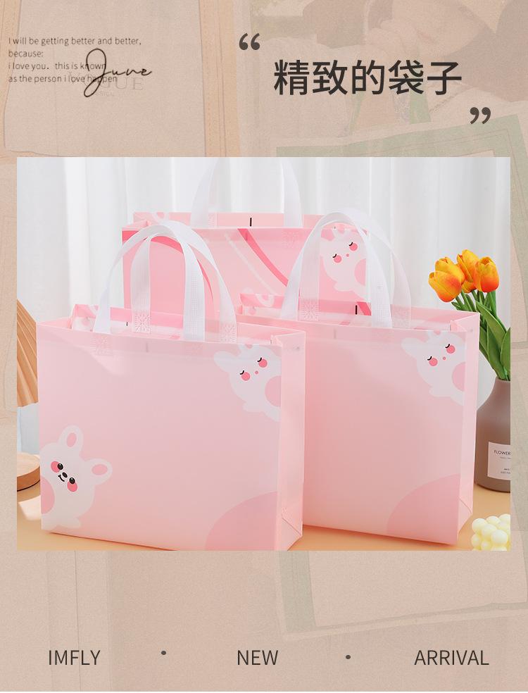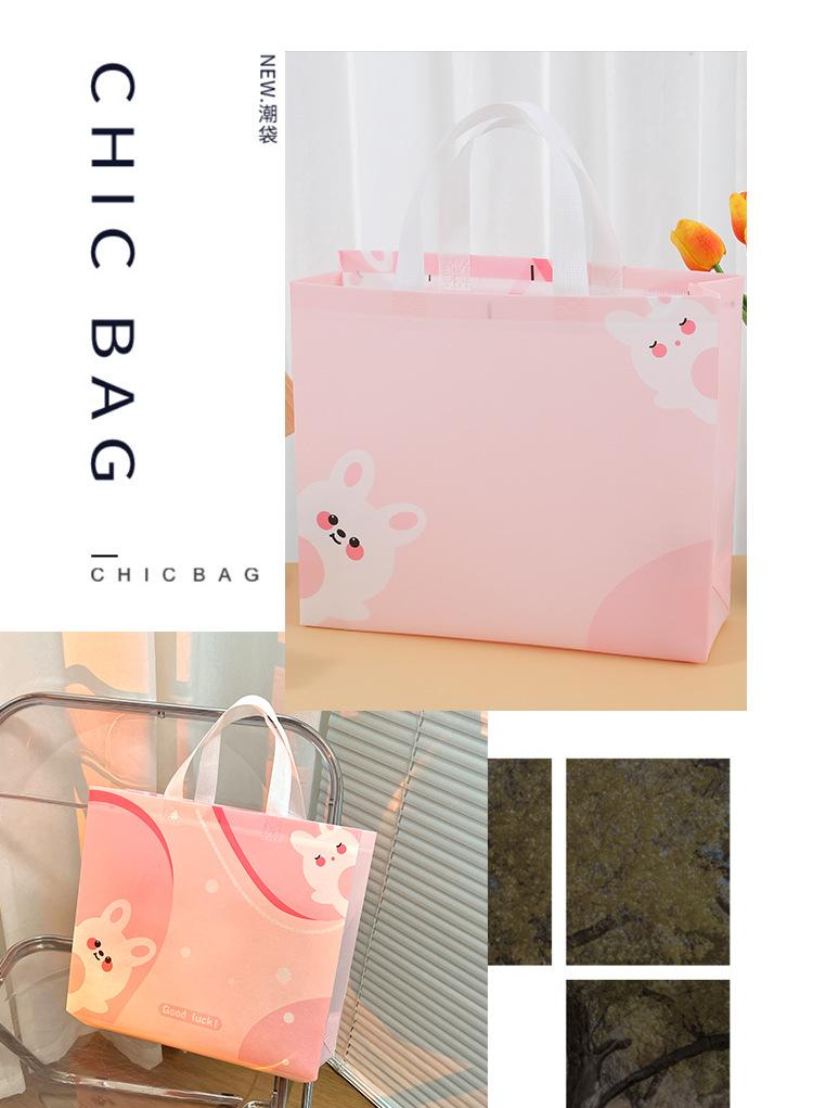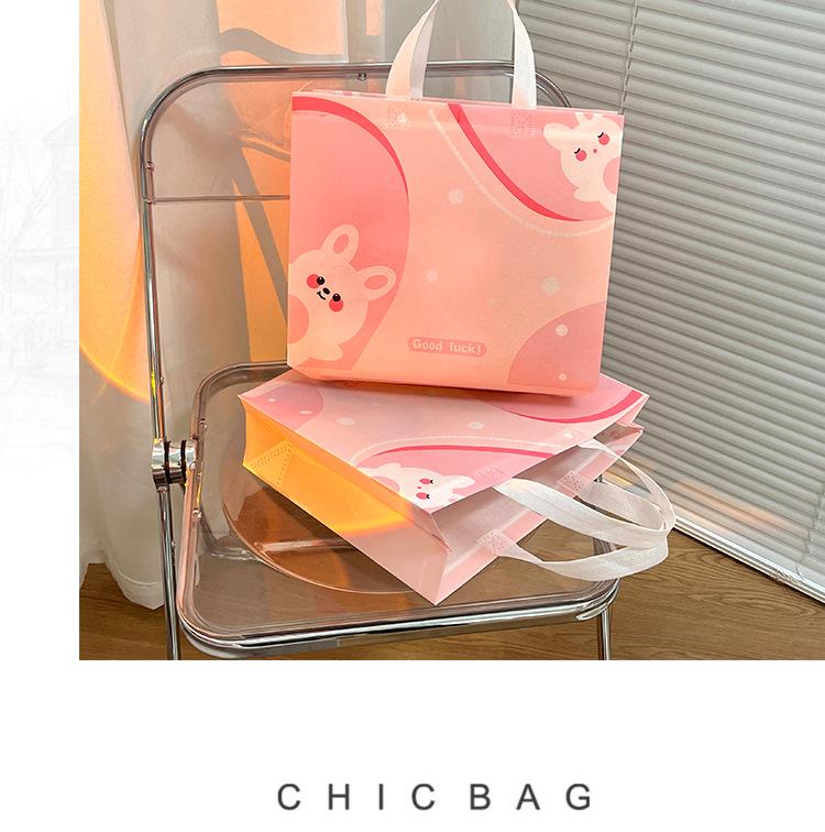 Bolso de mano no tejido laminado con diseño de conejo de dibujos animados, bolsa de compras para tienda de ropa, bolsa de regalo no tejida publicitaria con prensa en caliente