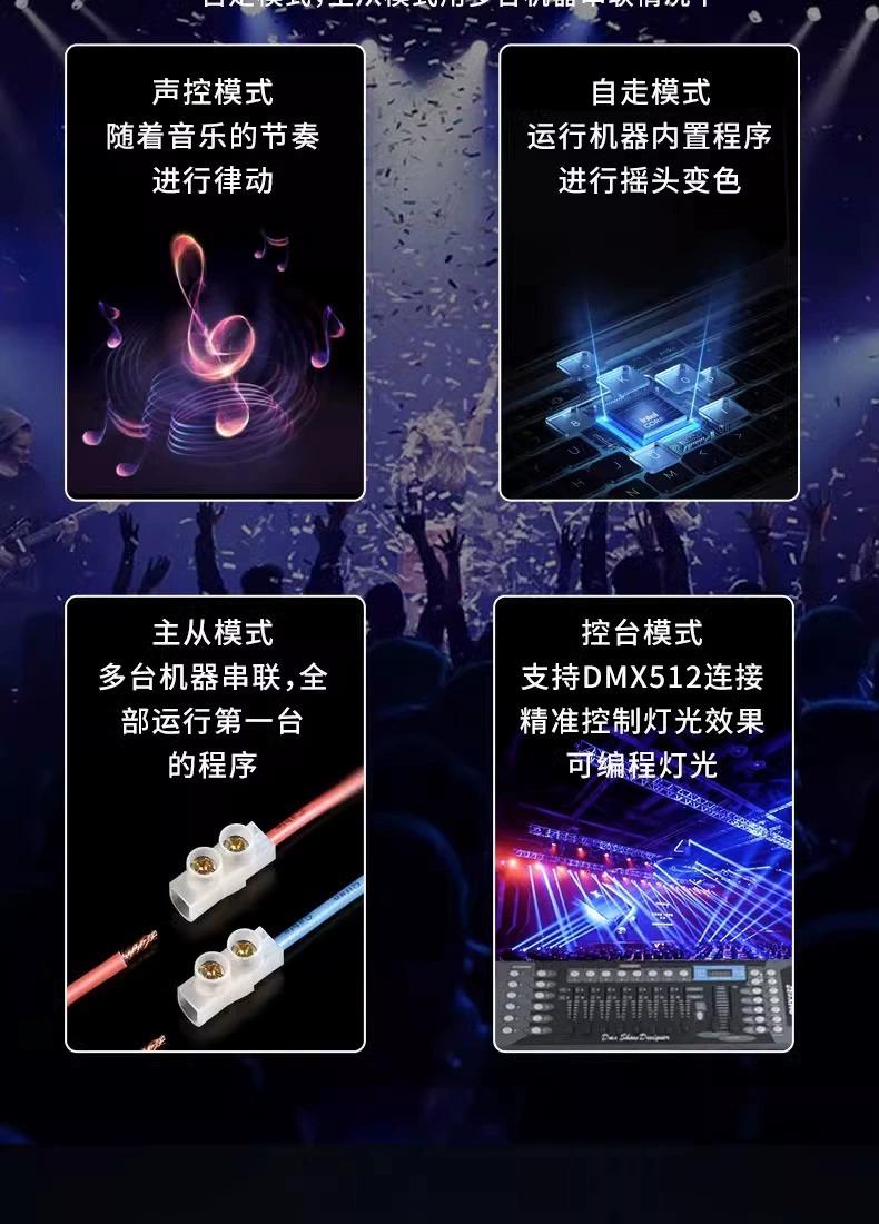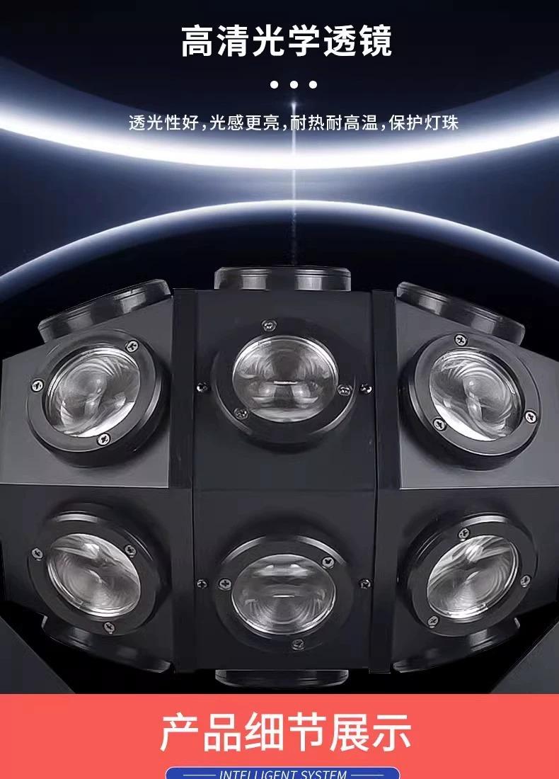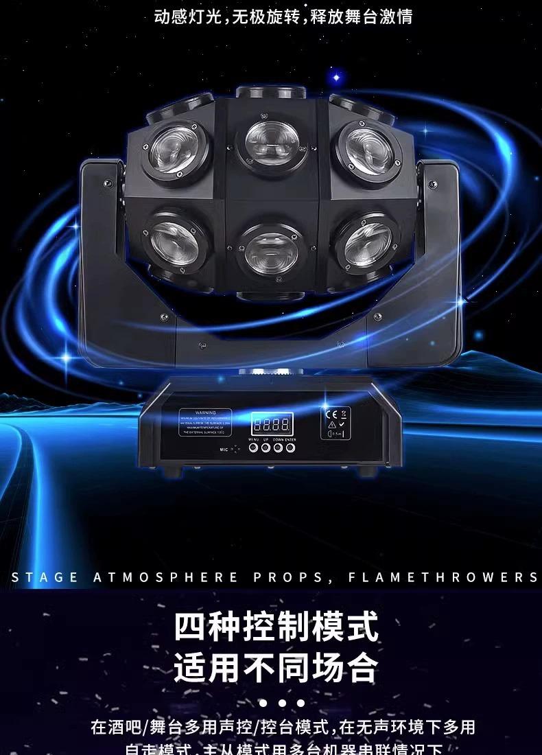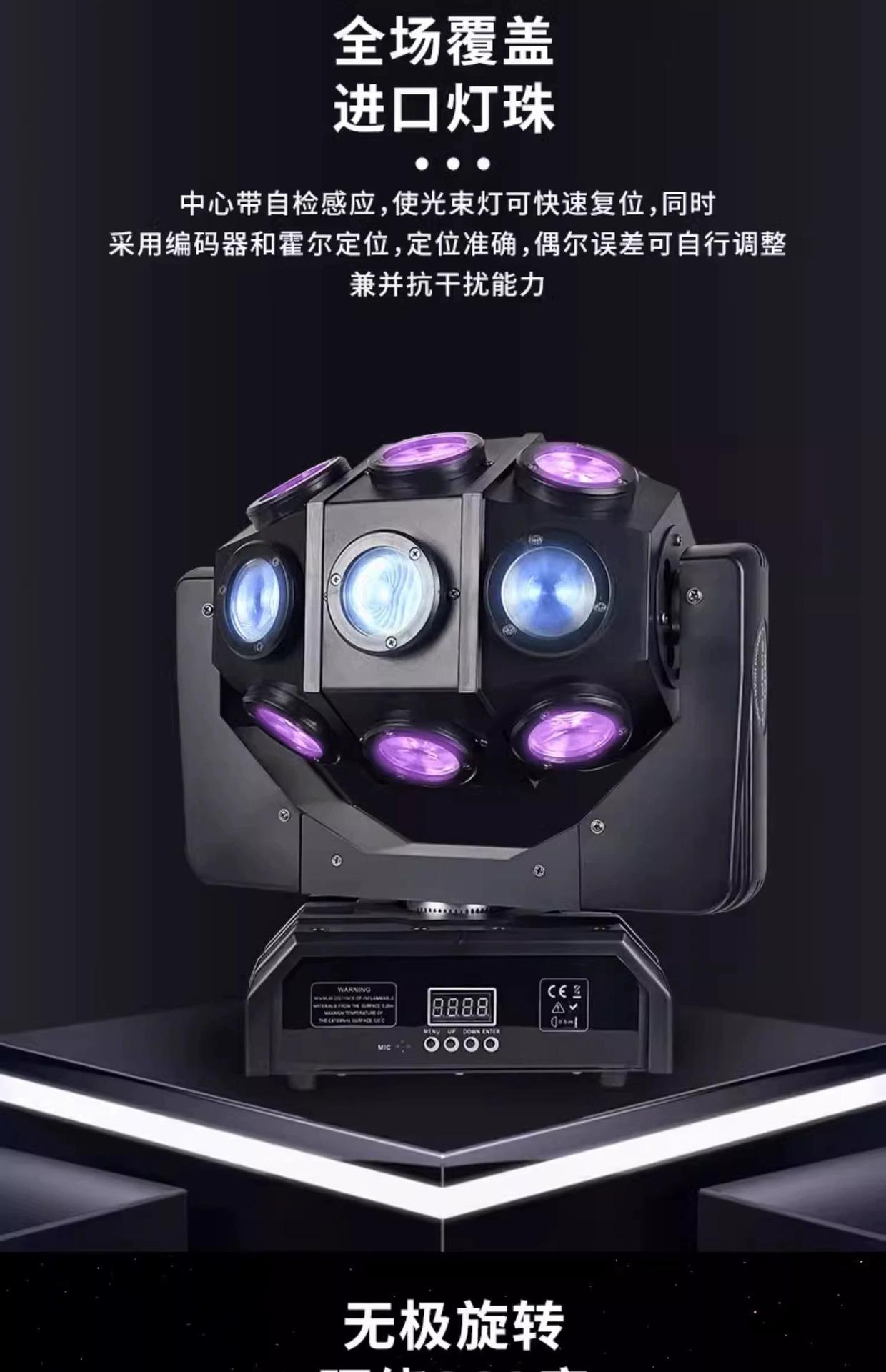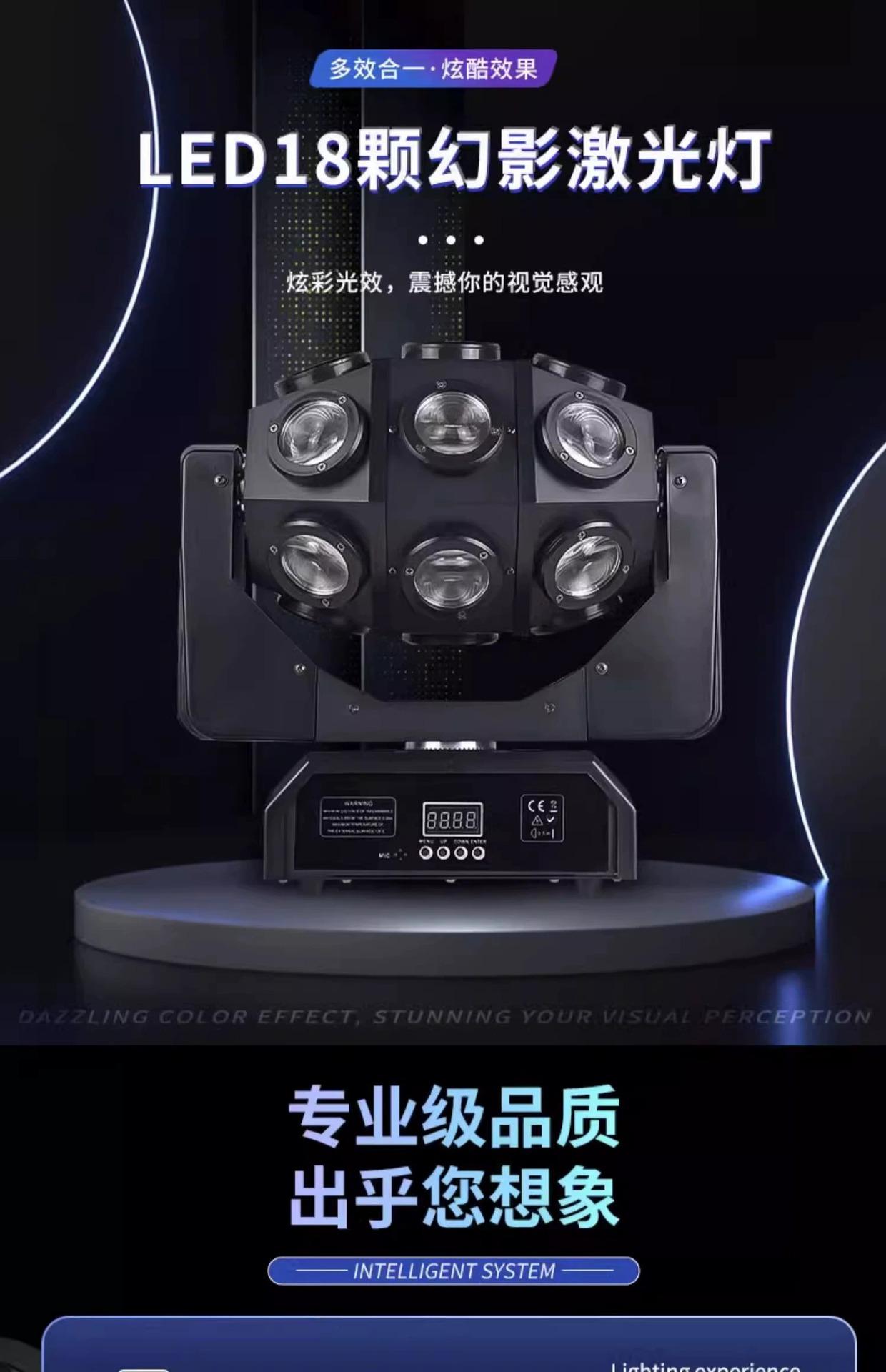18 Phantom laser lights, Colorful small cyclone mushroom lamp, 12 moving head beam lights, 12 double ball beam...