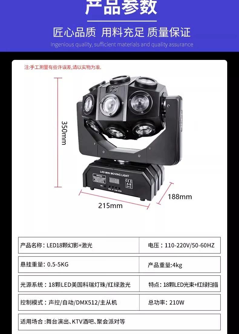 Luz láser con cabezal móvil giratorio de 18 pulgadas, lámpara flash KTV, luz de escenario, barra LED, luz láser giratoria de colores