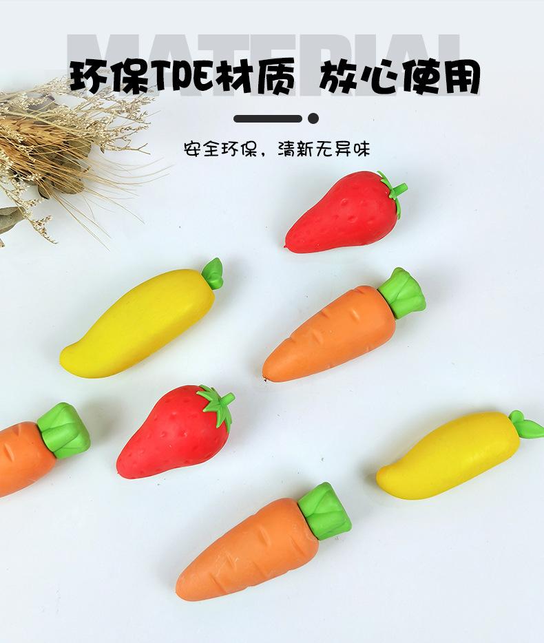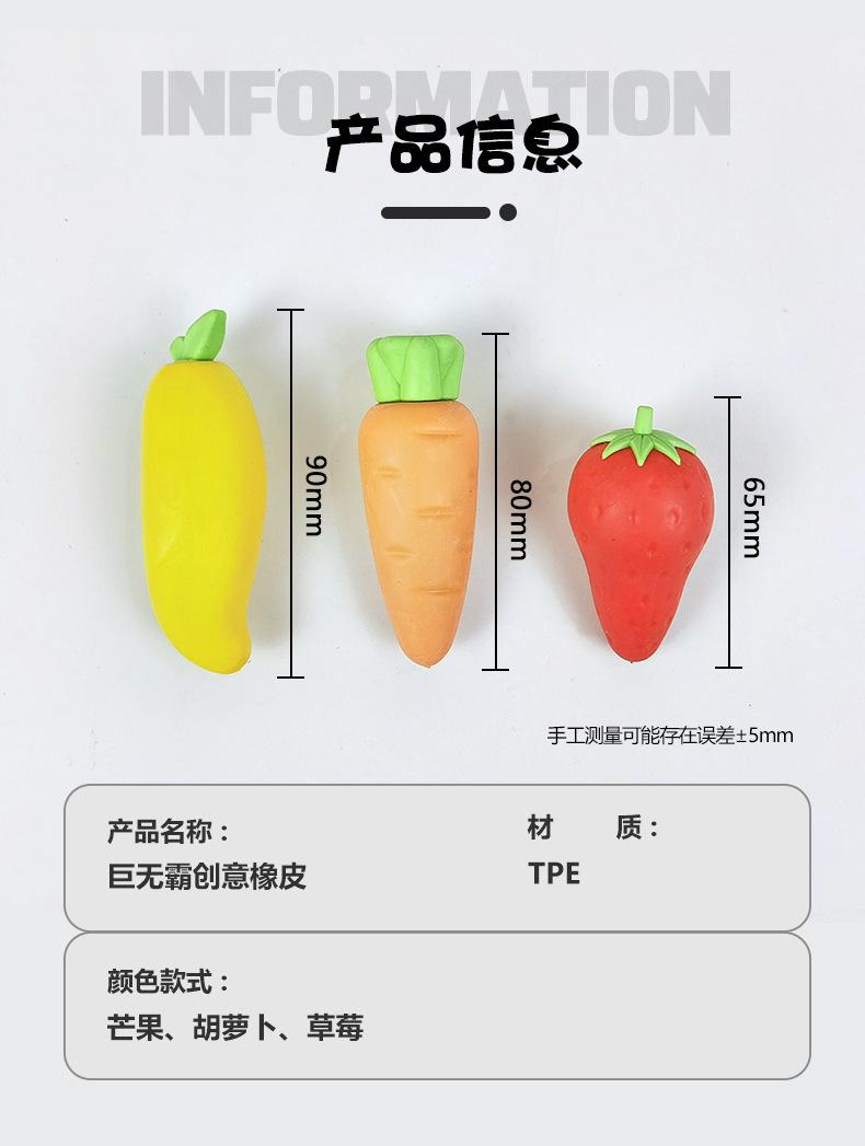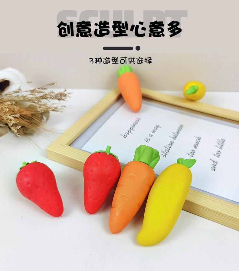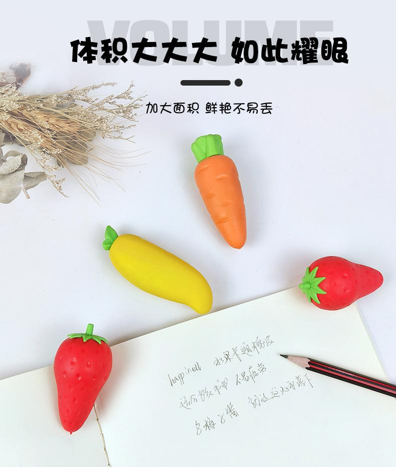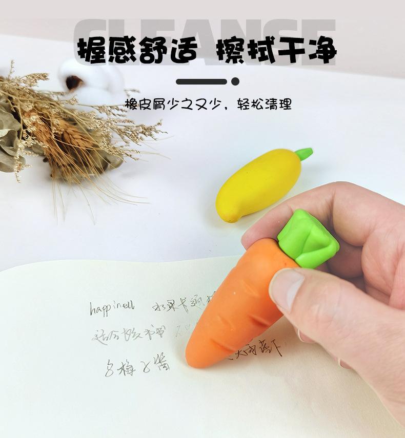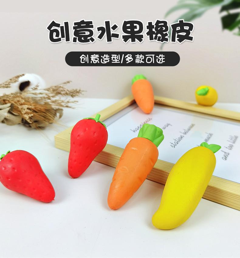Goma de borrar extraíble para estudiantes, bonita, limpia, sin dejar rastro, con forma de zanahoria y fresa, ideal para papelería creativa.