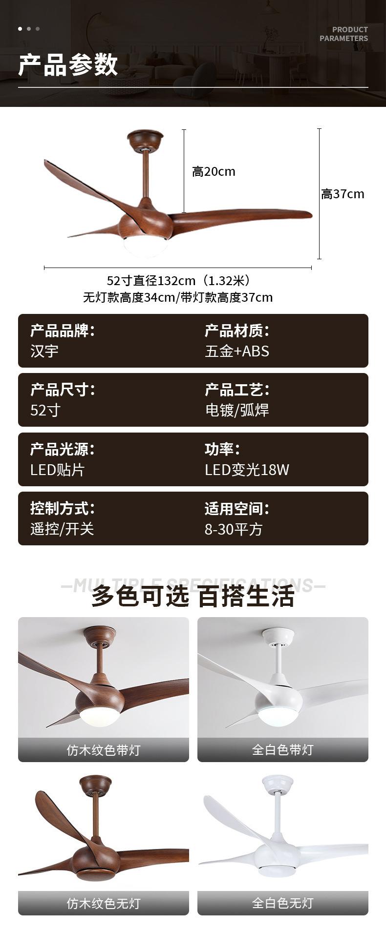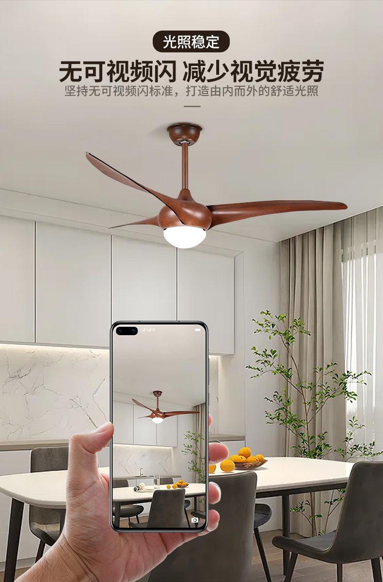 Ventilador de techo moderno con luz de frecuencia variable y veta de madera para comedor, sala de estar, sin luz, con luz, Zhongshan, iluminación decorativa para el hogar al por mayor