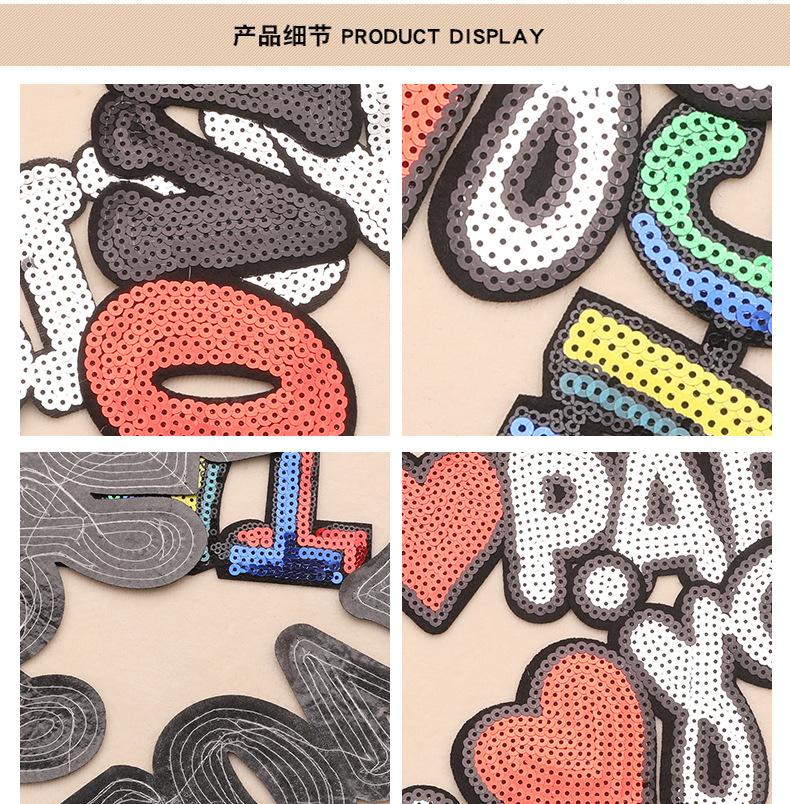 [Nota] Los parches con lentejuelas, cuentas, pedrería, flores de seda, bolas de pelo y bordados con hilo metálico deben plancharse primero por detrás y luego recortarse por delante, una vez fijados firmemente. Esto evitará dañar las lentejuelas u otros accesorios de la parte delantera. Mantenga la ropa (u otros textiles) seca y no rocíe agua sobre los parches de tela ni sobre la ropa con la plancha al plancharlos. Una vez planchado, el parche de tela generalmente se adhiere bien a la ropa (u otros textiles) durante mucho tiempo. Si el parche se desprende después de un tiempo o después del lavado, significa que la temperatura de la plancha es demasiado baja o el tiempo de planchado es demasiado corto. Puede repetir la operación original y planchar el parche de nuevo.