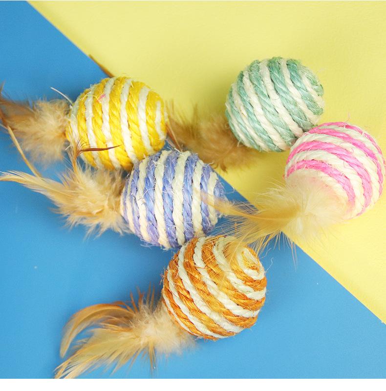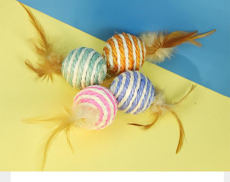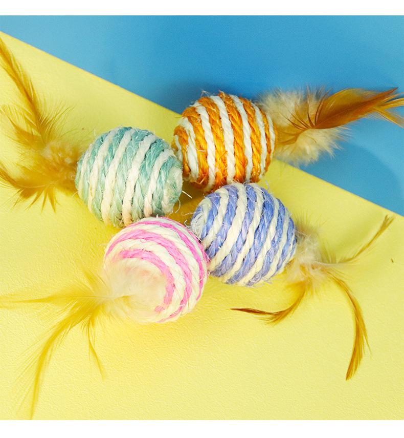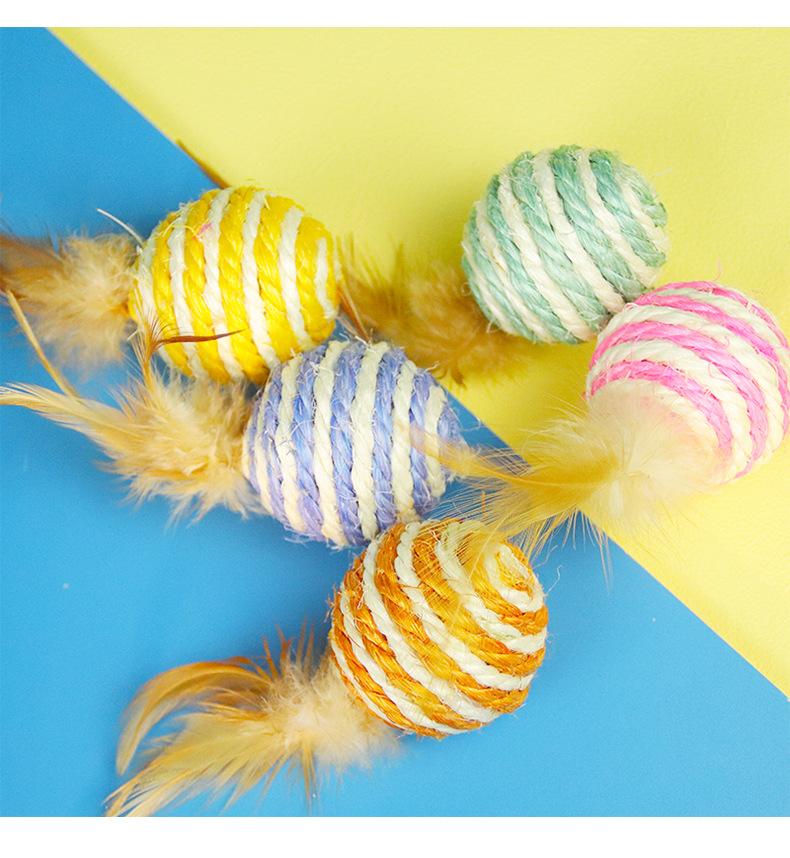 Fabricante de juguetes para gatos en stock bola de sisal pluma juguete divertido para gatos gato auto-Hola aliviando artefacto congestionado juguete para mascotas resistente a los arañazos