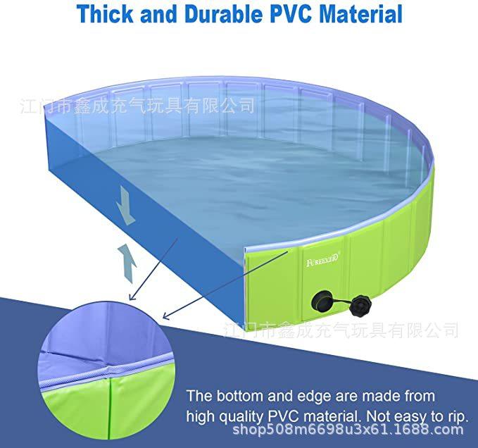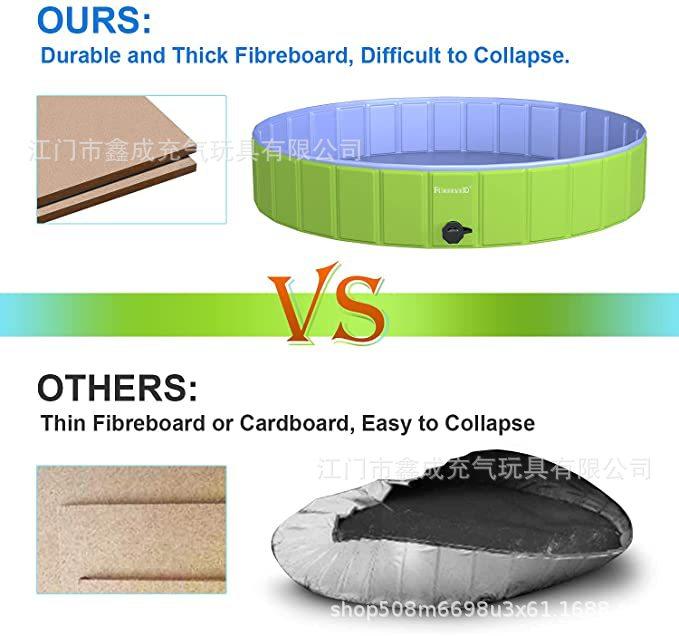 Materiales de alta calidad: Las paredes laterales de la piscina plegable para perros están hechas de PVC exterior ecológico de 0.25 mm, PVC interior engrosado de 0.45 mm y tablero de fibra MDF engrosado de 3.7 mm, que es duradero. Los materiales ecológicos y no tóxicos son seguros para niños y mascotas.