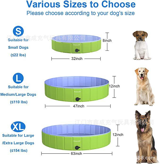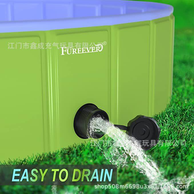 Portátil y Plegable: No necesita inflarse, se puede desplegar y llenar con agua por debajo de la línea máxima de llenado. Después de usar, séquelo y pliéguelo para guardarlo o para el próximo uso o póngalo en una bolsa de transporte para perros grandes.